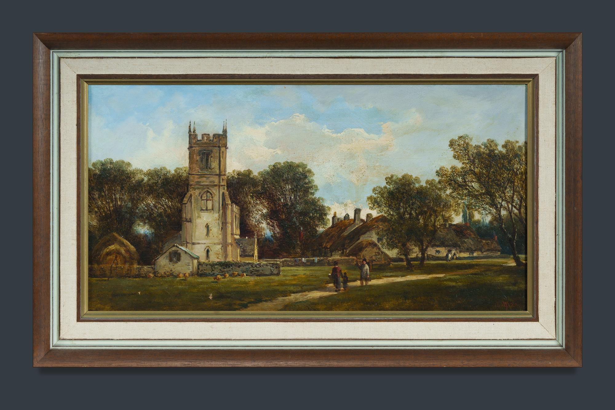 PITT, William (British 1819-1879) 'Long Compton, Warwickshire,' 1875. Monogram and dated lower right. Signed, titled and dated verso. Oil on Canvas 21.5x42cmEstimate $300-500