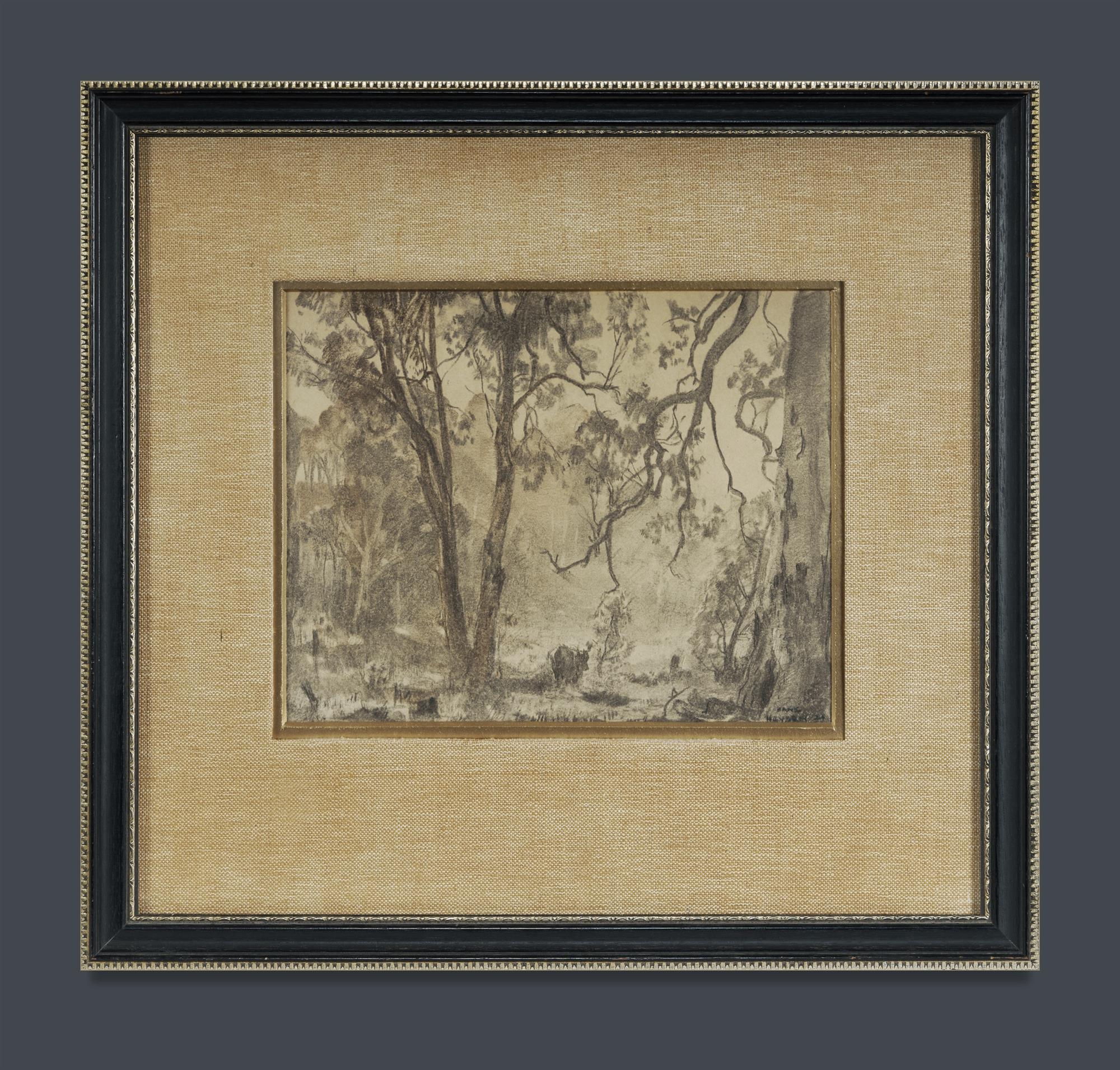HEYSEN, Hans (1877-1968) Cow in Glade, 1924 (?) Signed lower right, and dated indistinctly Graphite & Pastel on Card 20.5x26cmEstimate $2,000-4,000