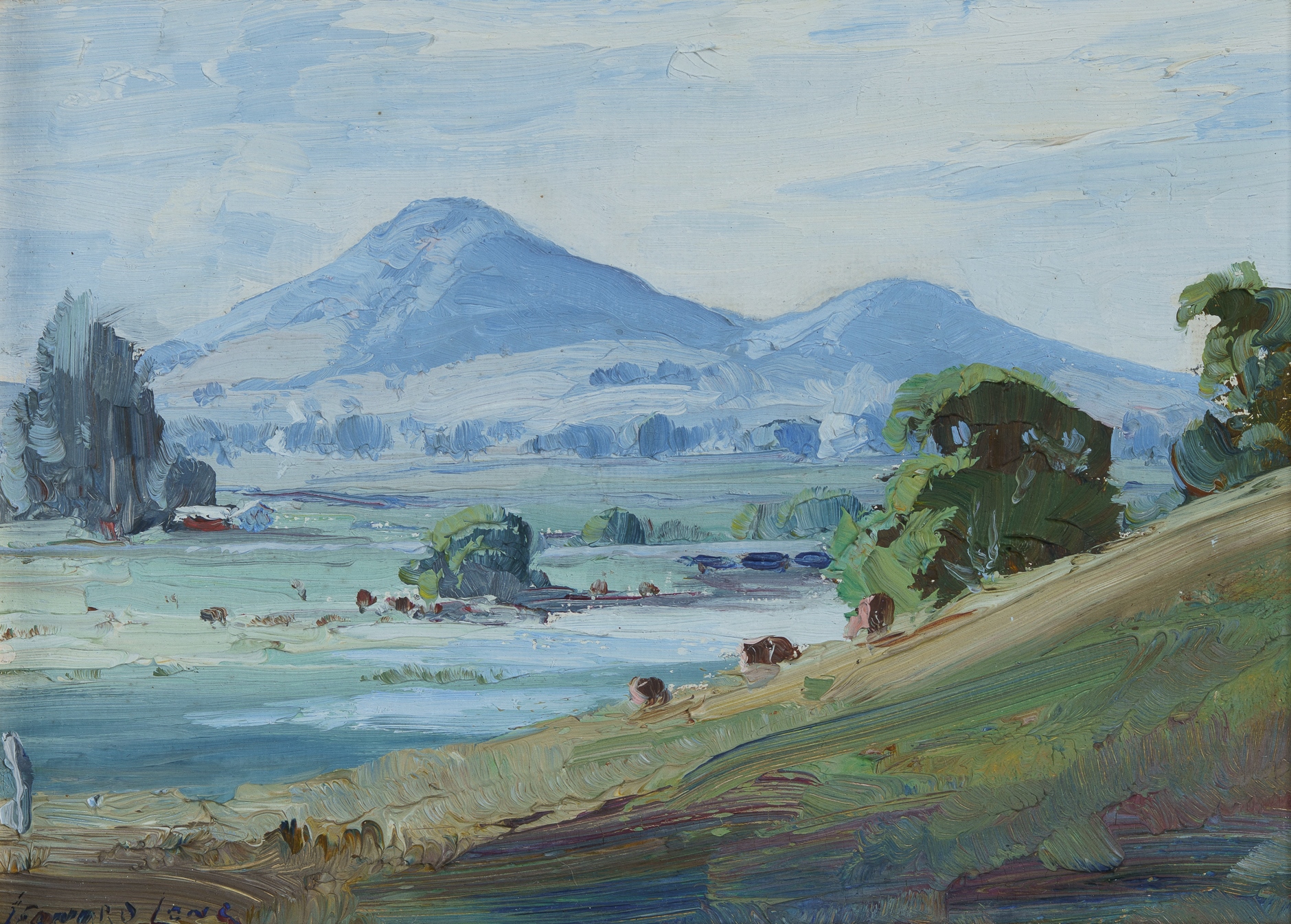 LONG, Leonard (1911-2013) (3) 'Coolangatta Mt from Meroo'; 'Shoalhaven at Nowra;' and 'Cambewarra Landscape' All signed. Oil on Board (3) 11x15cm (each)Estimate $400-600