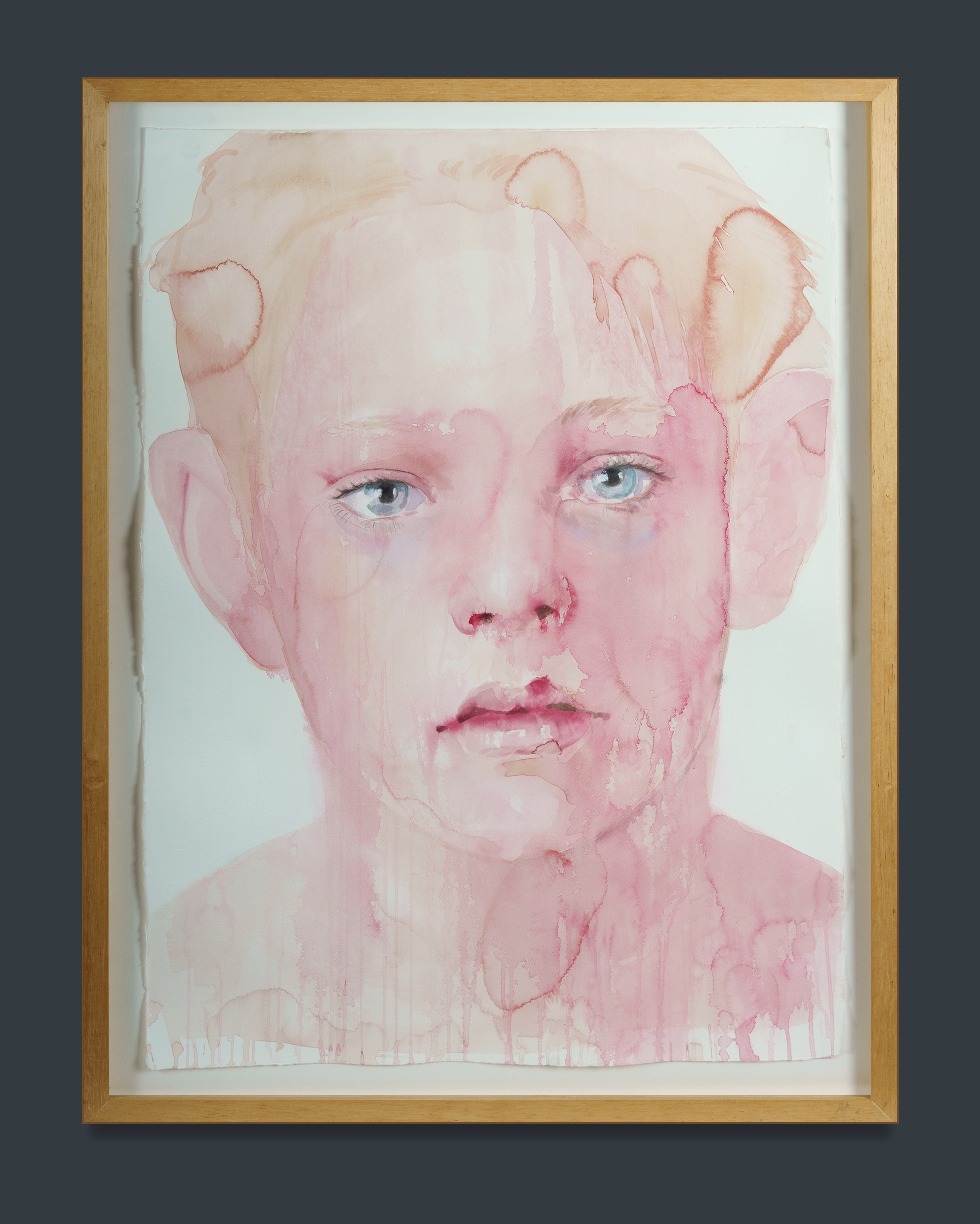 HOOD, Cherry (b.1950) Untitled (Portrait of Boy), c.2002. Likely signed verso, concealed by frame. W/Clr 75.5x56cm PROVENANCE: Ken Hinds Cultural Heritage Collection, Qld.Estimate $600-1,000