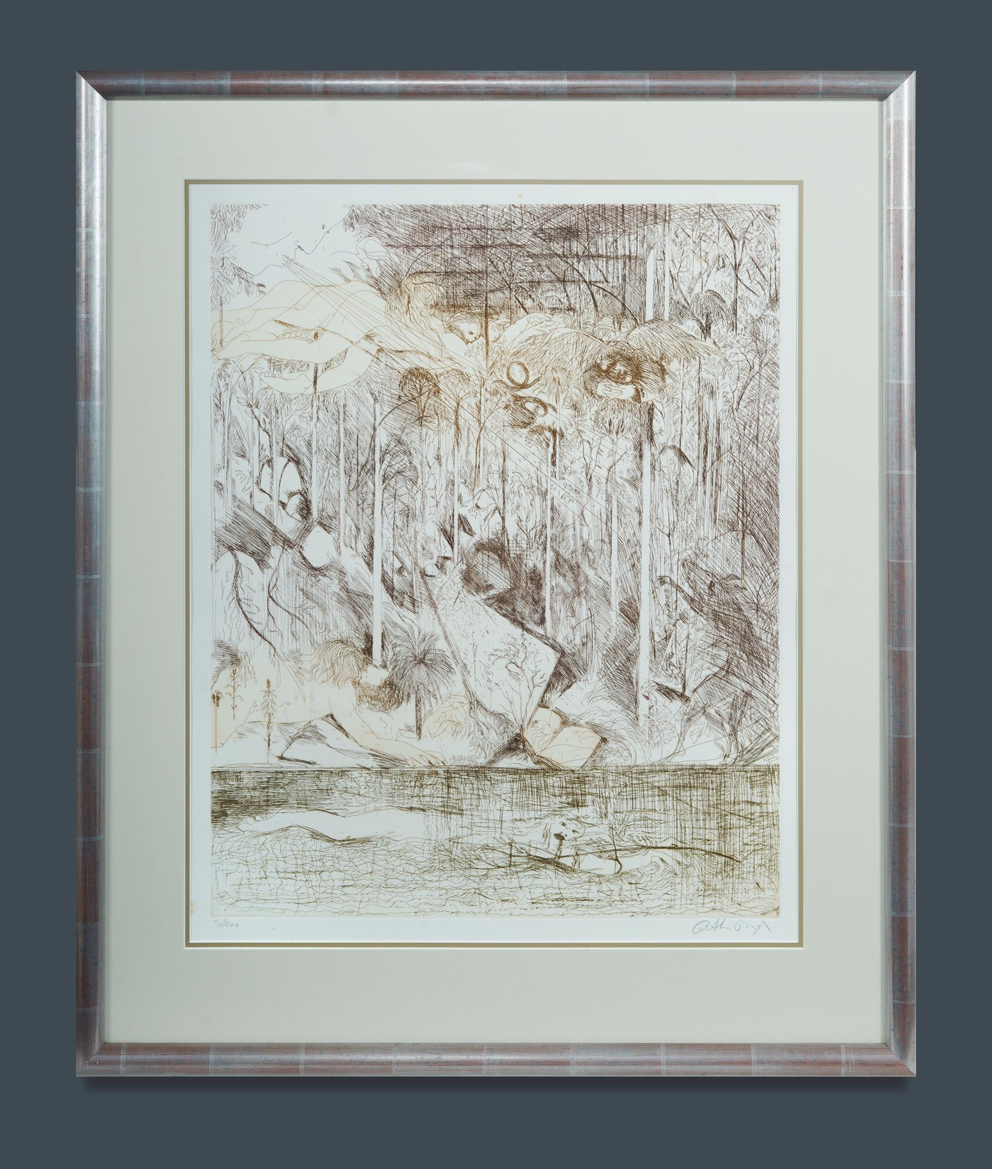 BOYD, Arthur Merric Bloomfield (1920-1999) 'Landscape with Adam, Eve and Angel,' c.1986. Signed lower right. Etching 70/200 65x52cm (plate)
