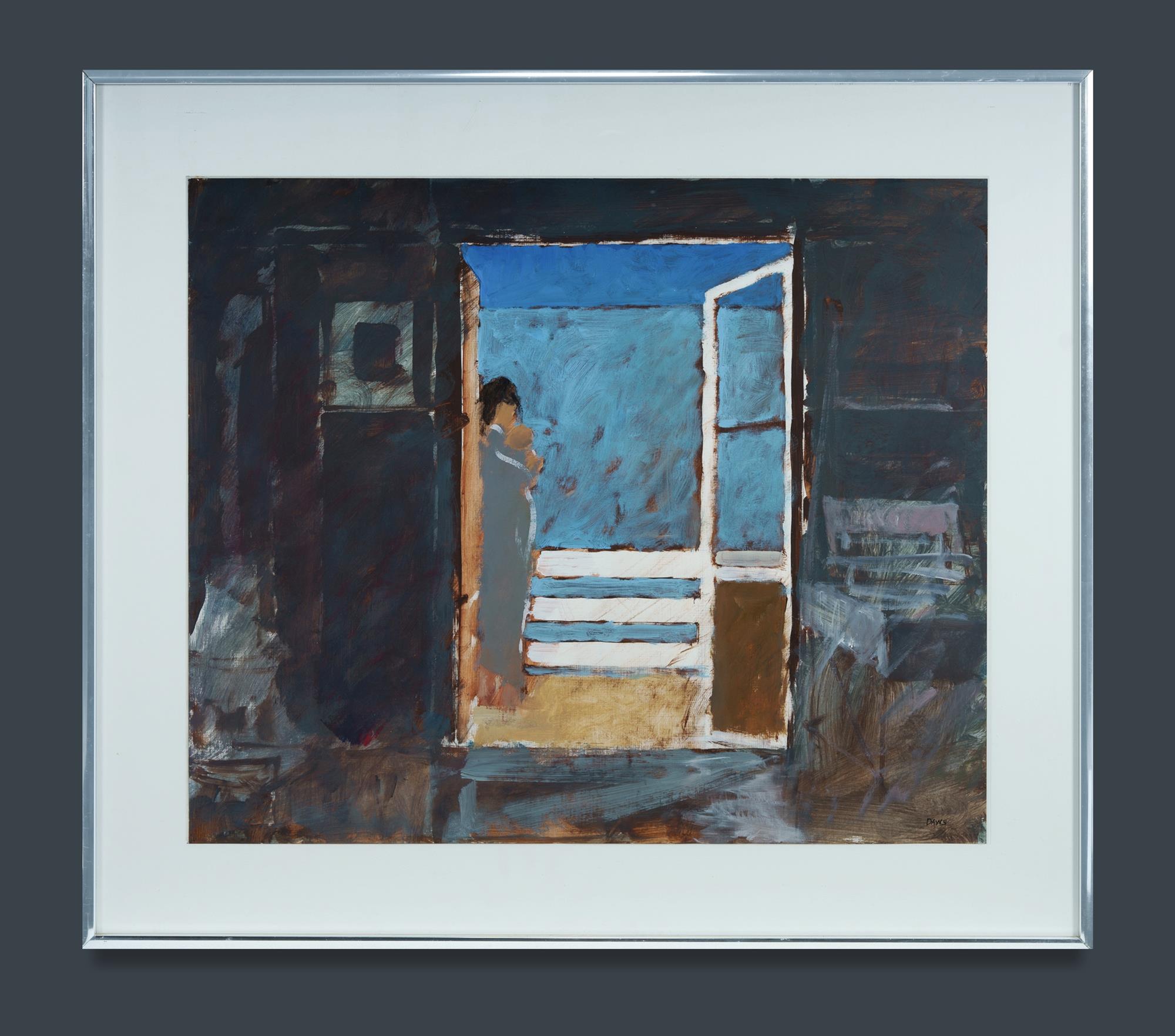 DAWS, Lawrence (b.1927) Mother and Baby on Balcony Signed lower right. Oil (?) on Canvas Paper 64x76.5cm PROVENANCE: Ken Hinds Cultural Heritage Collection, Qld.Estimate $800-1,500
