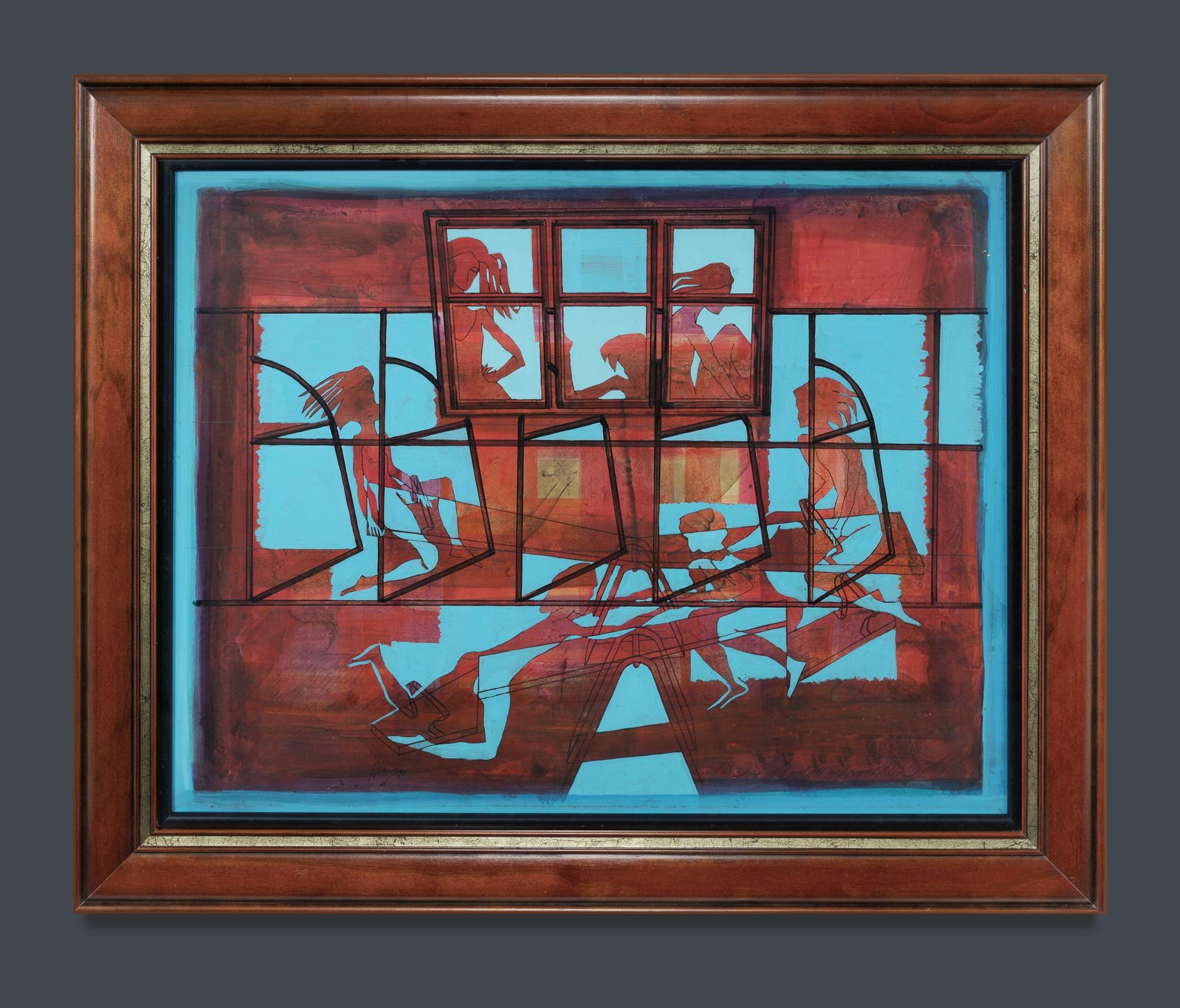 ALAND, John (1937-2005) 'Circle of Play,' 1970. Signed lower left. Acrylic on Board 49x64cm
