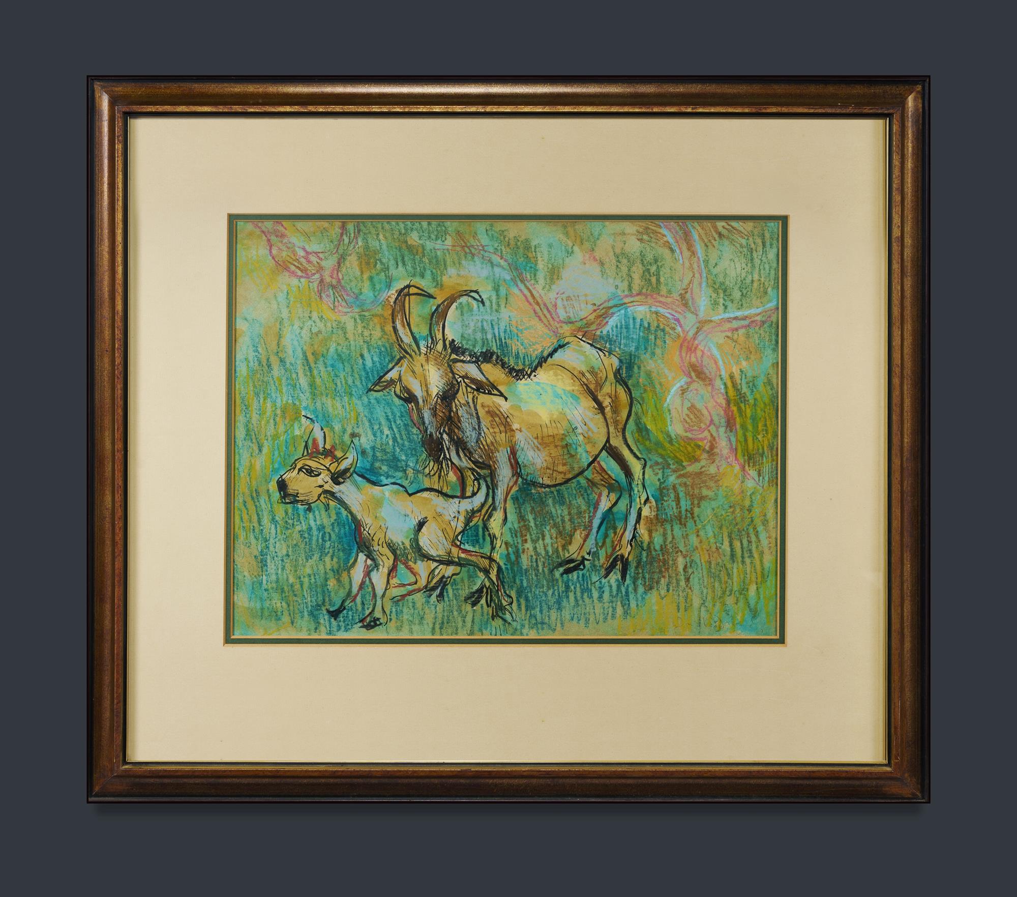 FRIEND, Donald (1915-1989) Goat and Kid Signed and dated indistinctly lower right. Mixed Media on Paper 37x49cm PROVENANCE: Ken Hinds Cultural Heritage Collection, Qld.Estimate $800-1,200