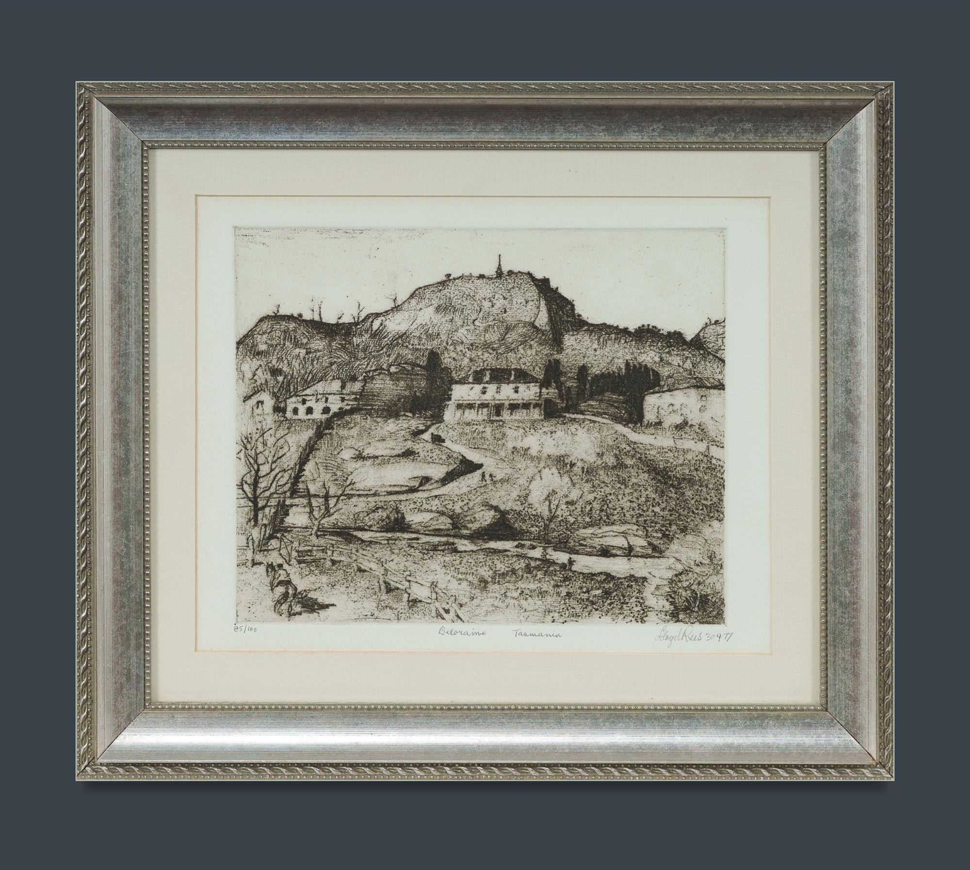 REES, Lloyd (1895-1988) 'Deloraine, Tasmania,' 1977. Signed and dated lower right. Etching 85/100 20x25cm PROVENANCE: Ken Hinds Cultural Heritage Collection, Qld. LITERATURE: Kolenberg, H., 'Lloyd Rees: Etchings and Lithographs,' The Beagle Press, Sydney, 1986, p.39 (#20)Estimate $200-300