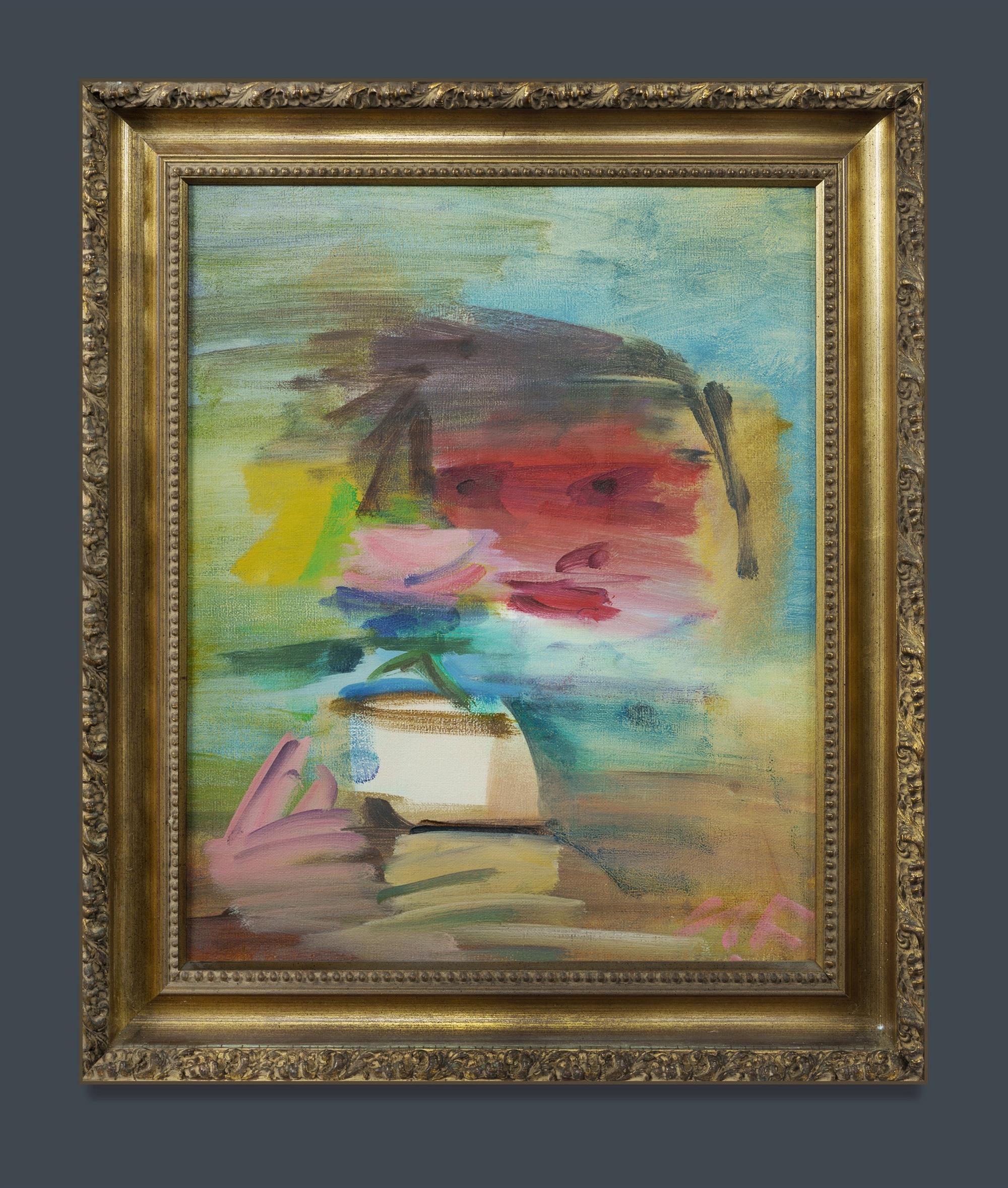 FULLBROOK, Sam (1922-2004) Figure with Pot, 1980. Initialled lower right. Accompanied by photograph of the artist with the painting in background (attached verso) Oil on Canvas 53x43cm PROVENANCE: Bruce Collection, SydneyEstimate $8,000-12,000