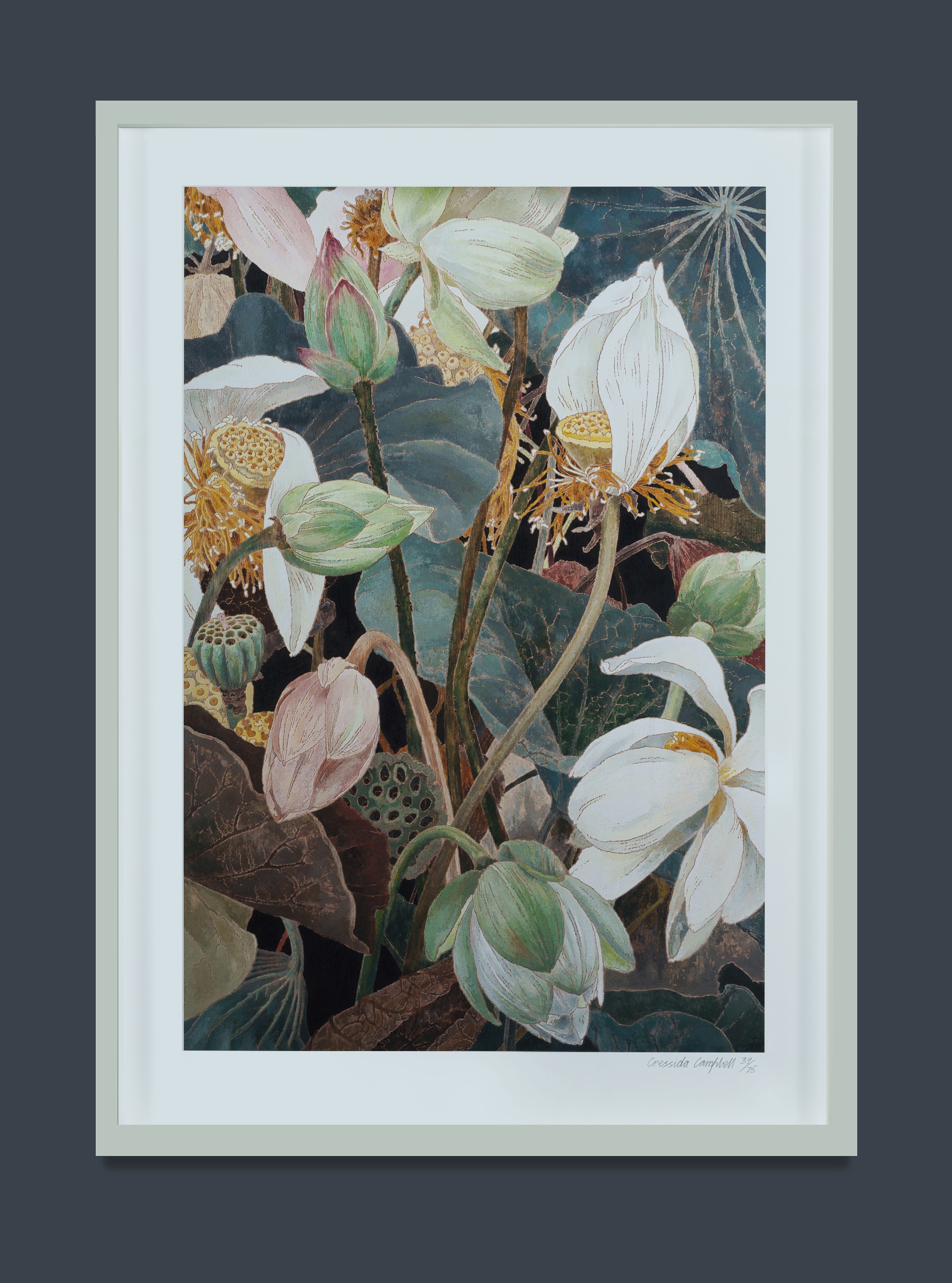 CAMPBELL, Cressida (b.1960) 'Lotus, 2019' This limited edition issued by the National Gallery of Australia in 2022, hand signed by the artist in pencil lower right. Blind stamp for NGA, and accompanied by certificate of authenticity. Pigment Ink Print on Cotton Rag Art Paper 39/75 65x43.5cm (image) 74x52.5cm (sheet, sight)