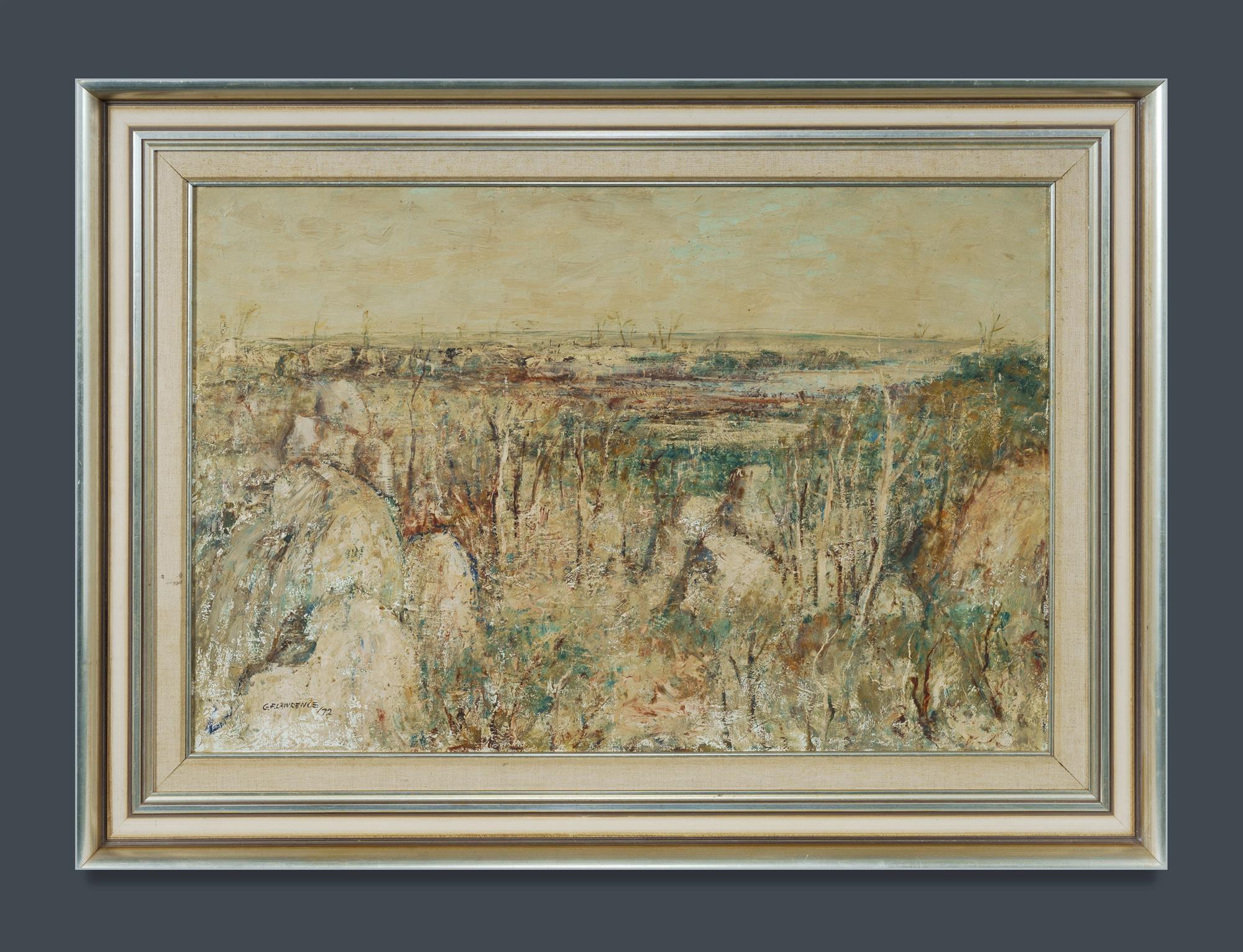LAWRENCE, George Feather (1901-1981) 'Boulder Country, Lake Illawarra,' 1972. Signed and dated lower left. Artarmon Galleries, Sydney, label verso (reg. no.16792) Oil on Canvas 50x75.5cmEstimate $600-900