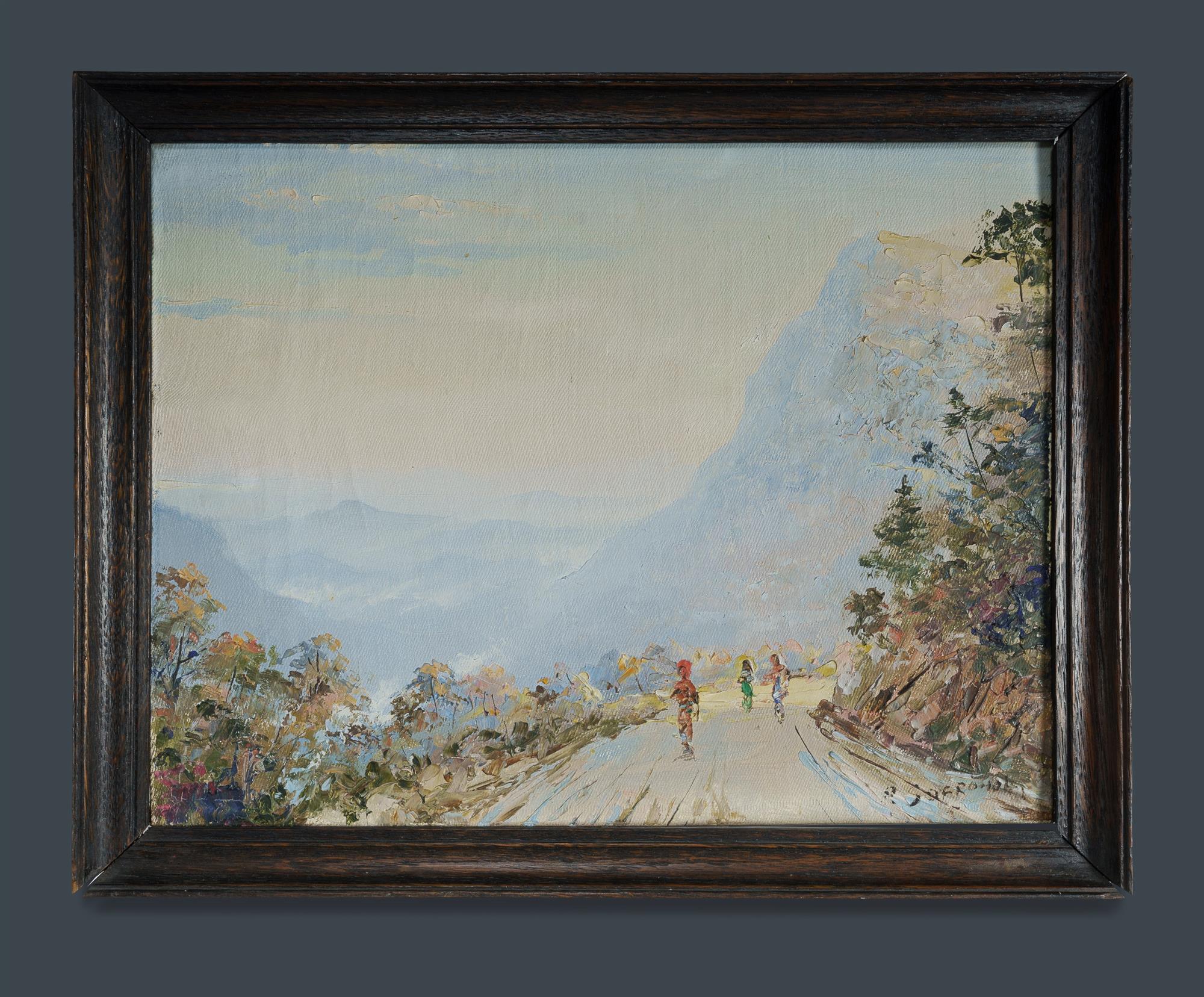 SOFRONOFF, Alexander (Russian 1901-1948) Figures on Mountain Road, Ceylon. Signed lower right. Oil on Canvas 26.5x35cm PROVENANCE: Private collection, Ceylon/Switzerland (acquired in Ceylon in the 1940s)Estimate $2,000-4,000