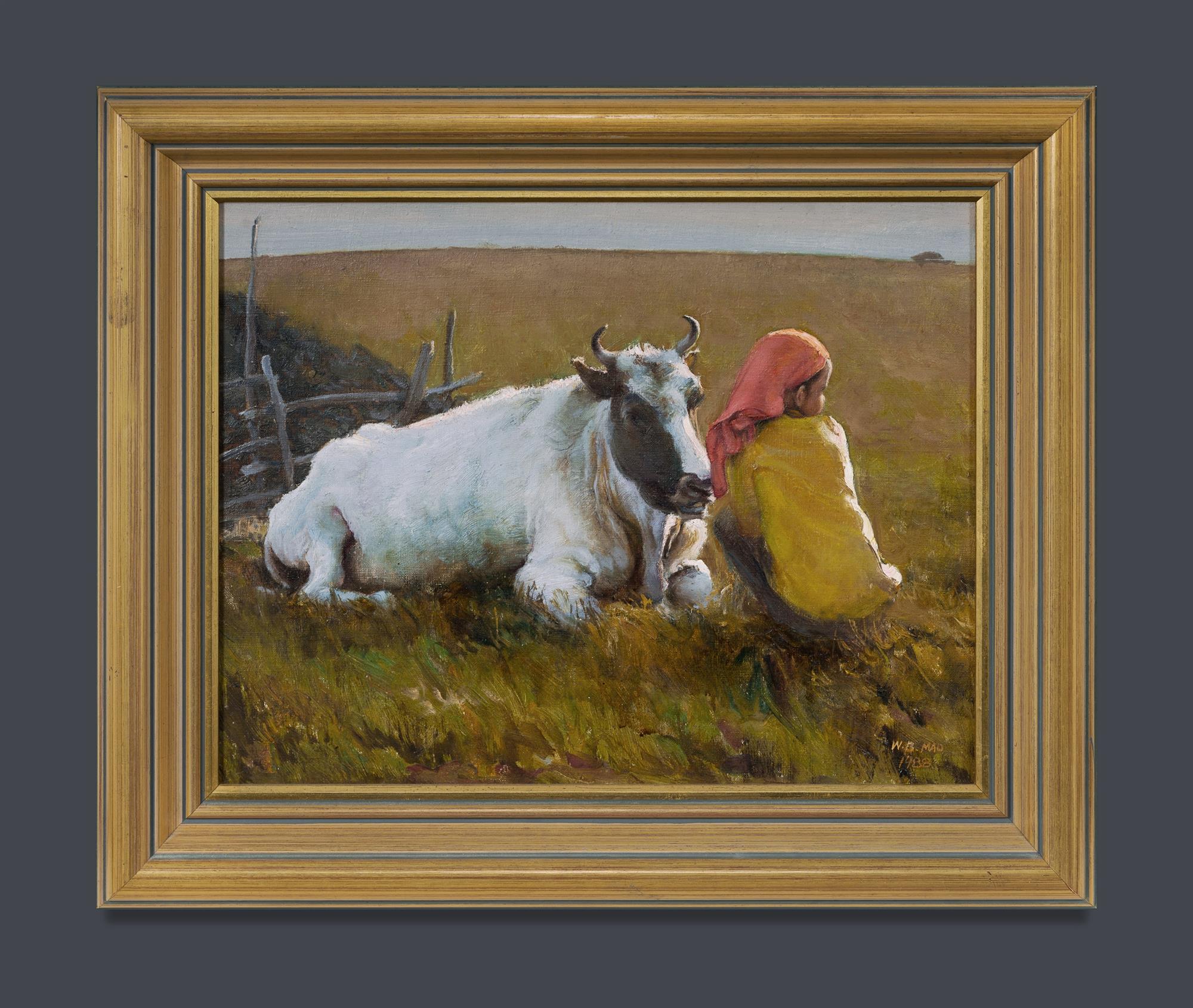 MAO, Wen Biao (Chinese b.1950) Girl with Bullock, 1988 Signed and dated lower right. Oil on Canvas 34x44cm PROVENANCE: Orchard Gallery, Singapore (label verso); private family collection, Singapore thence Sydney.Estimate $400-700