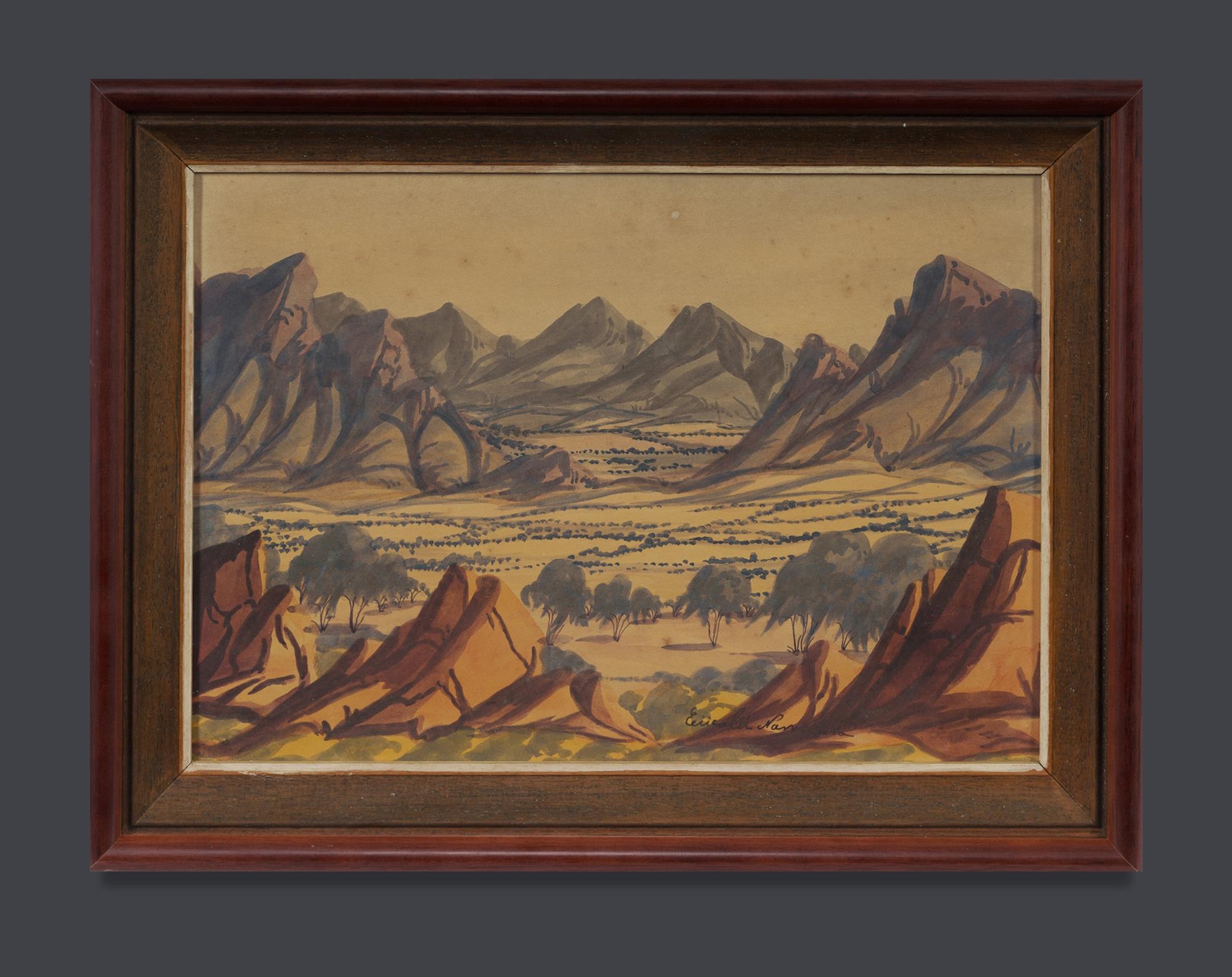 NAMATJIRA, Ewald (1930-1984) Central Australian Landscape Signed lower right. W/Clr 25.5x37cm