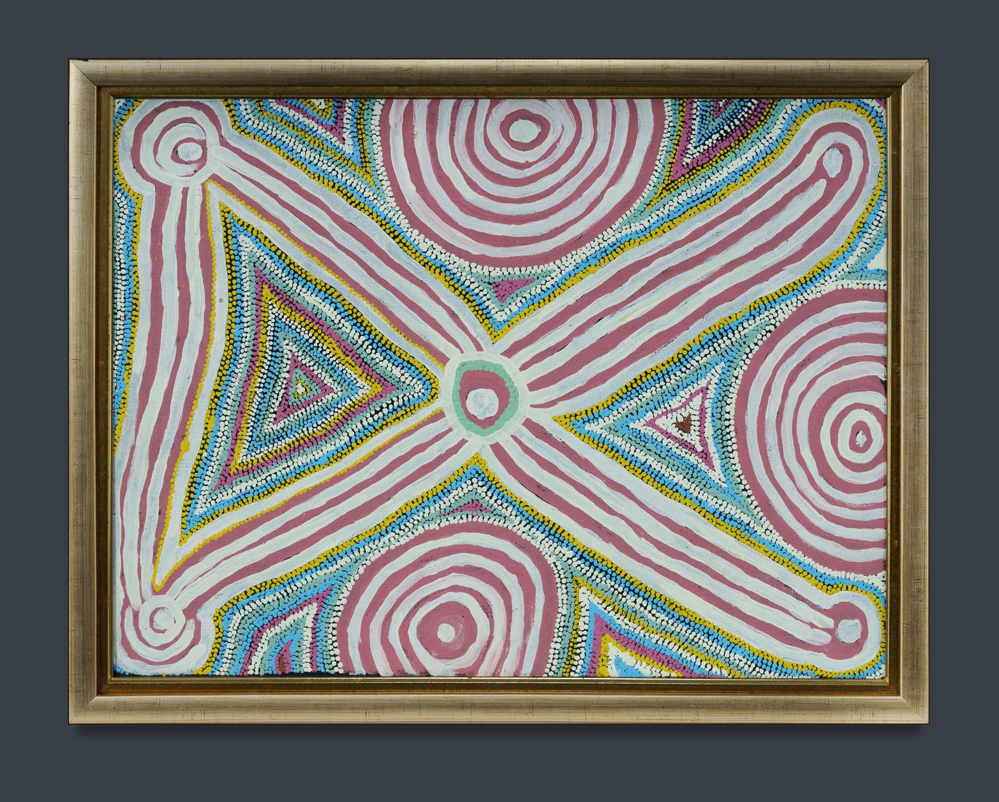 NAPANANGKA, Sarah Daniels (Aboriginal c.1935) Untitled Inscribed verso with artist's name ('Sara Nabanangka Danials') Acrylic on Linen 60.5x45.5cm PROVENANCE: Yanda Aboriginal Art, cat #YA3210; Ken Hinds Cultural Heritage Collection, Qld.Estimate $350-550