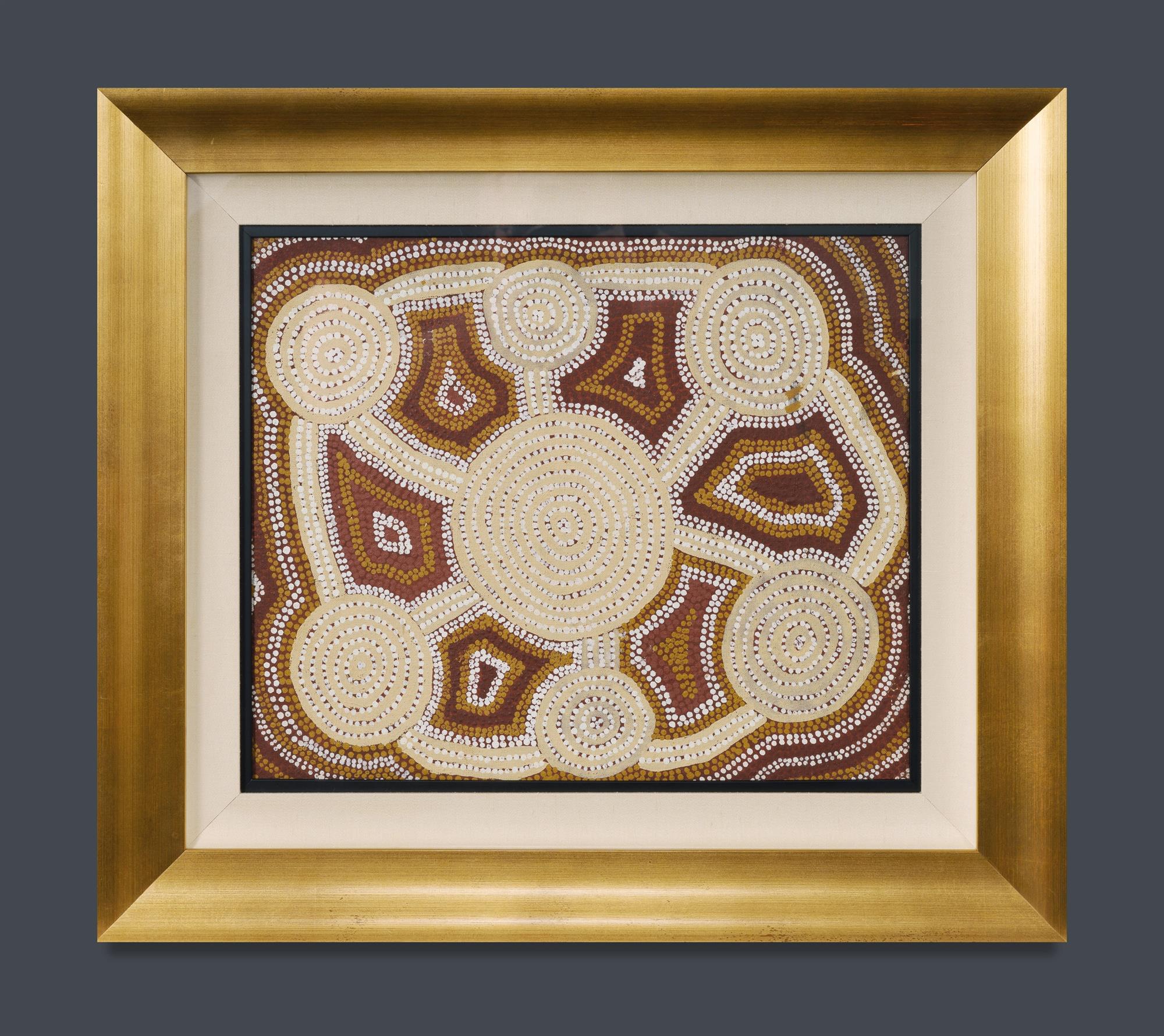 TJUNGURRAYI, Yala Yala Gibbs (Aboriginal c.1924-1998) Untitled, 1993. Acrylic on Linen 45x37.5cm (sight) PROVENANCE: Papunya Tula Artists, cat #YY931104; private collection, Germany; Christie's, October 12th 2004 (lot 152); Ken Hinds Cultural Heritage Collection, Qld.Estimate $800-1,500