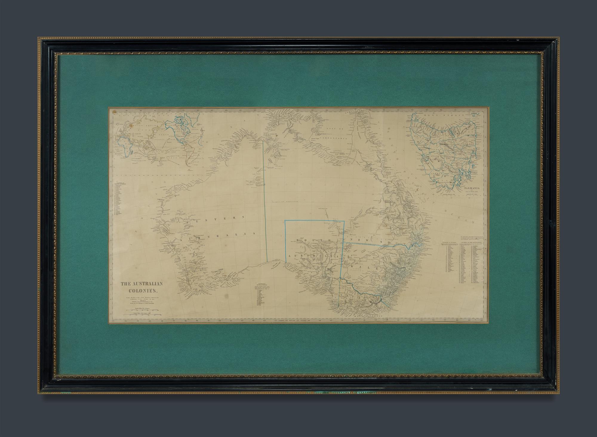 'The Australian Colonies,' c.1859. Pub. by The Society for the Distribution of Useful Knowledge (SDUK) Hand-Coloured Steel Engraving (39x70cm) Estimate $100-200