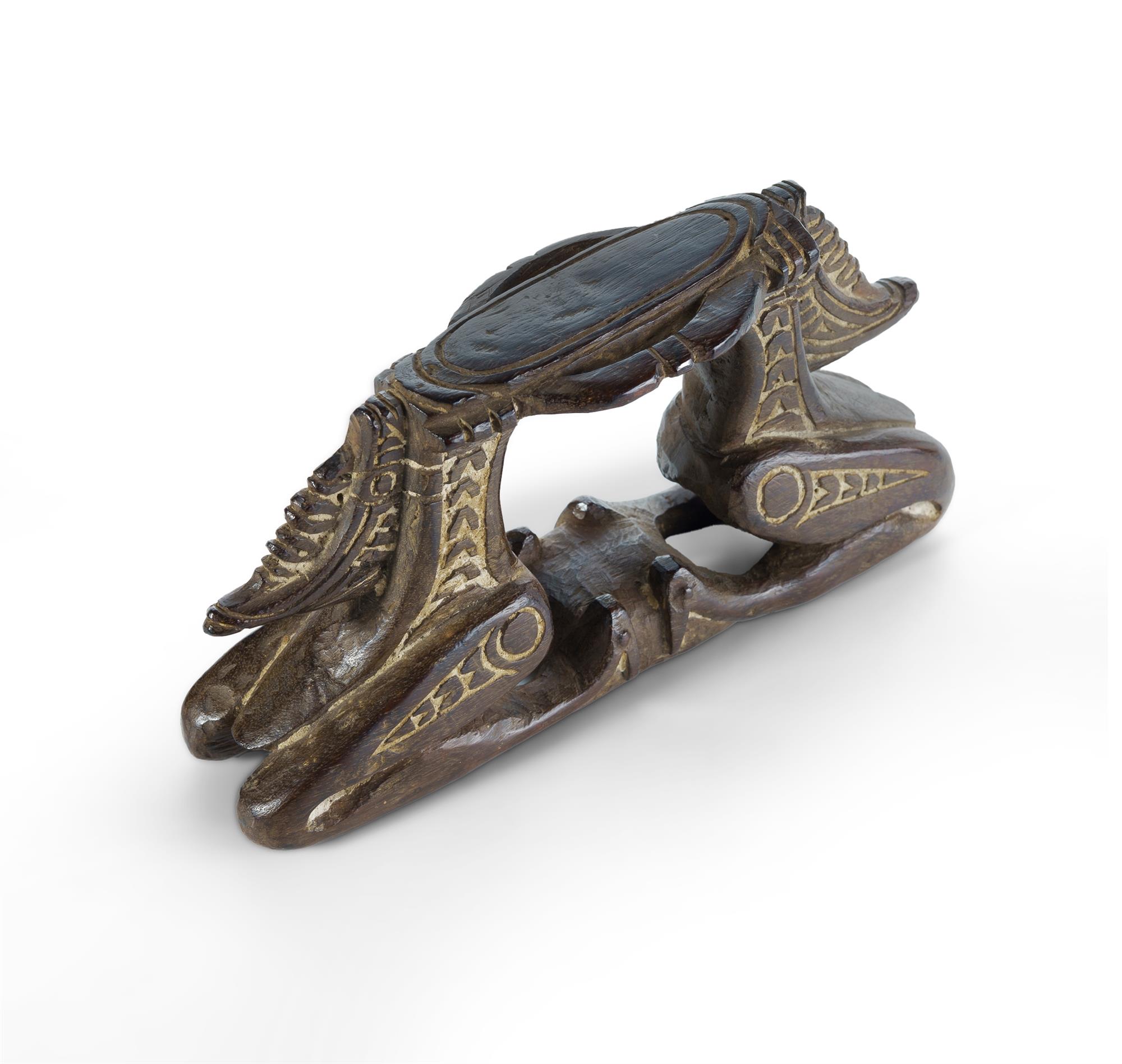 Old Trobriand Islands Headrest (Pillow) The base formed with 2 anthropomorphic figures with lime rubbed incised details. (H12cm L23cm)