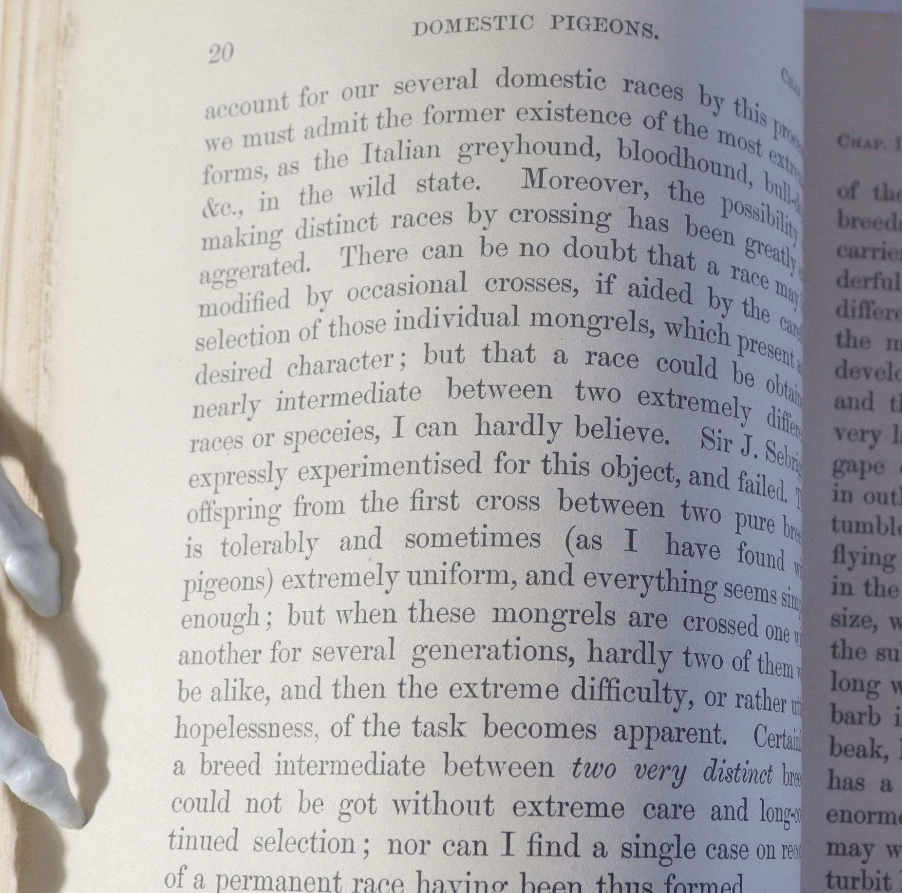 DARWIN, Charles. On the Origin of Species by Means of Natural Selection or the Preservation of Favoured Races in the Struggle for Life. Pub. LONDON: John Murray, Albemarle Street, 1859. First issue of the first edition. Title, pp[v]-ix, 502pp :: 1 diagram, 28pp of advertisements dated June 1859. Russell notes, in pencil, to fly leaf…'This is the first issue of first edition which sold out on the day of publication. Some of the first issue points: p.20, L11, species misspelt speceies; p.184 has original but improbable form of story of whale-bear. When purchased from Quaine's bookshop Melbourne in 1935 for £2.2.0 it had been sadly misused. The front cover and spine of the original binding were missing and the back cover was torn in half. I had it rebound by Green of Melbourne in full green morocco at a cost of £2.10.0. Half title and pp.29-32 of the advertisements are lacking. Gilt ruled green morocco boards in good condition, spine sunned. Text block is gilded to the top edge. Remainder of edges show mild foxing. Text is overall very clean. The folded chart has likely been rebacked with fine linen. Bookplate: Ex Libris K. F. Russell. (195x121mm)