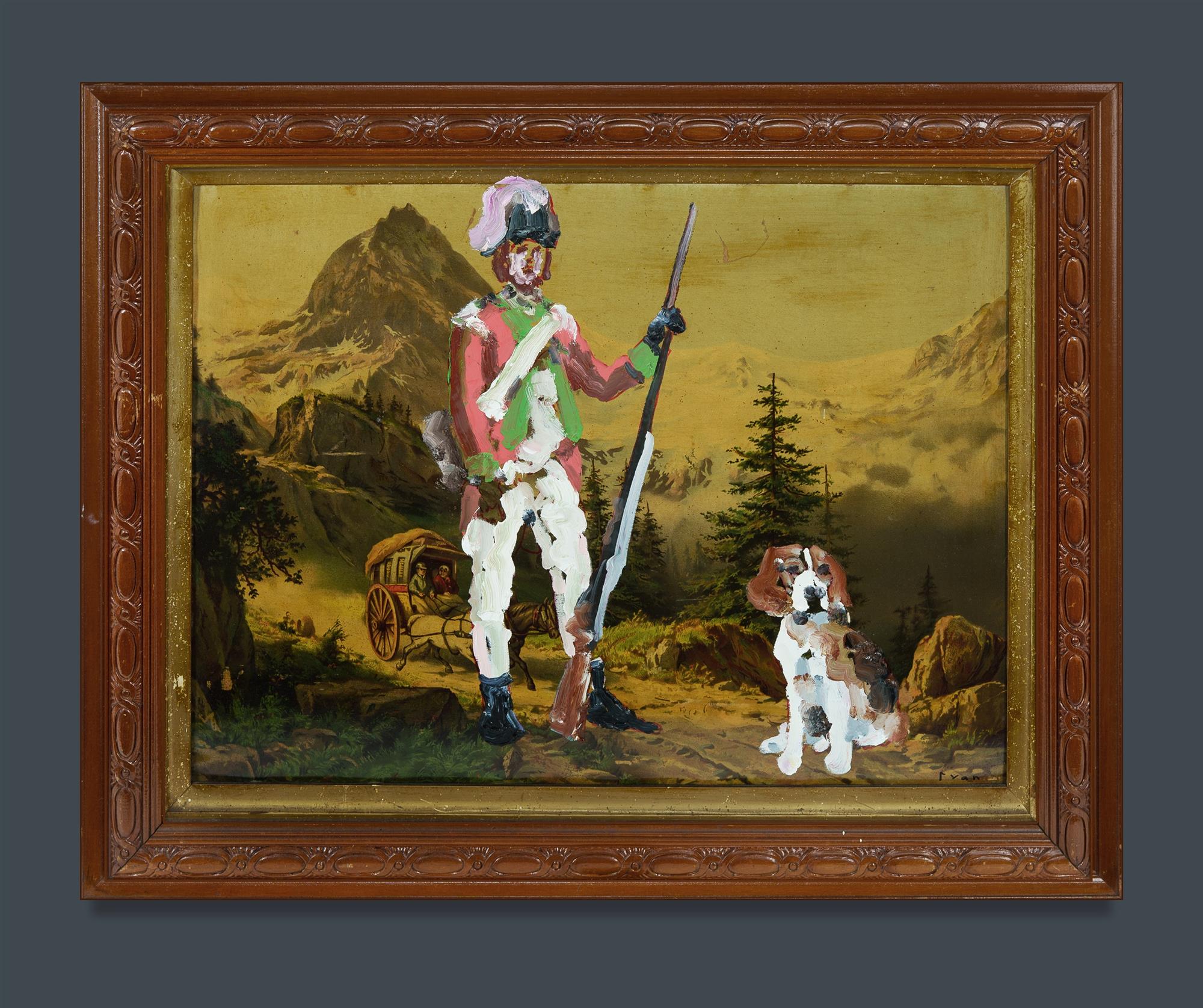RYAN, Paul (b.1964) 'Soldier and Dog' Signed lower right. Oil on Found Framed Picture 47x64.5cm (image) 64.5x82cm (frame)Estimate $700-1,200
