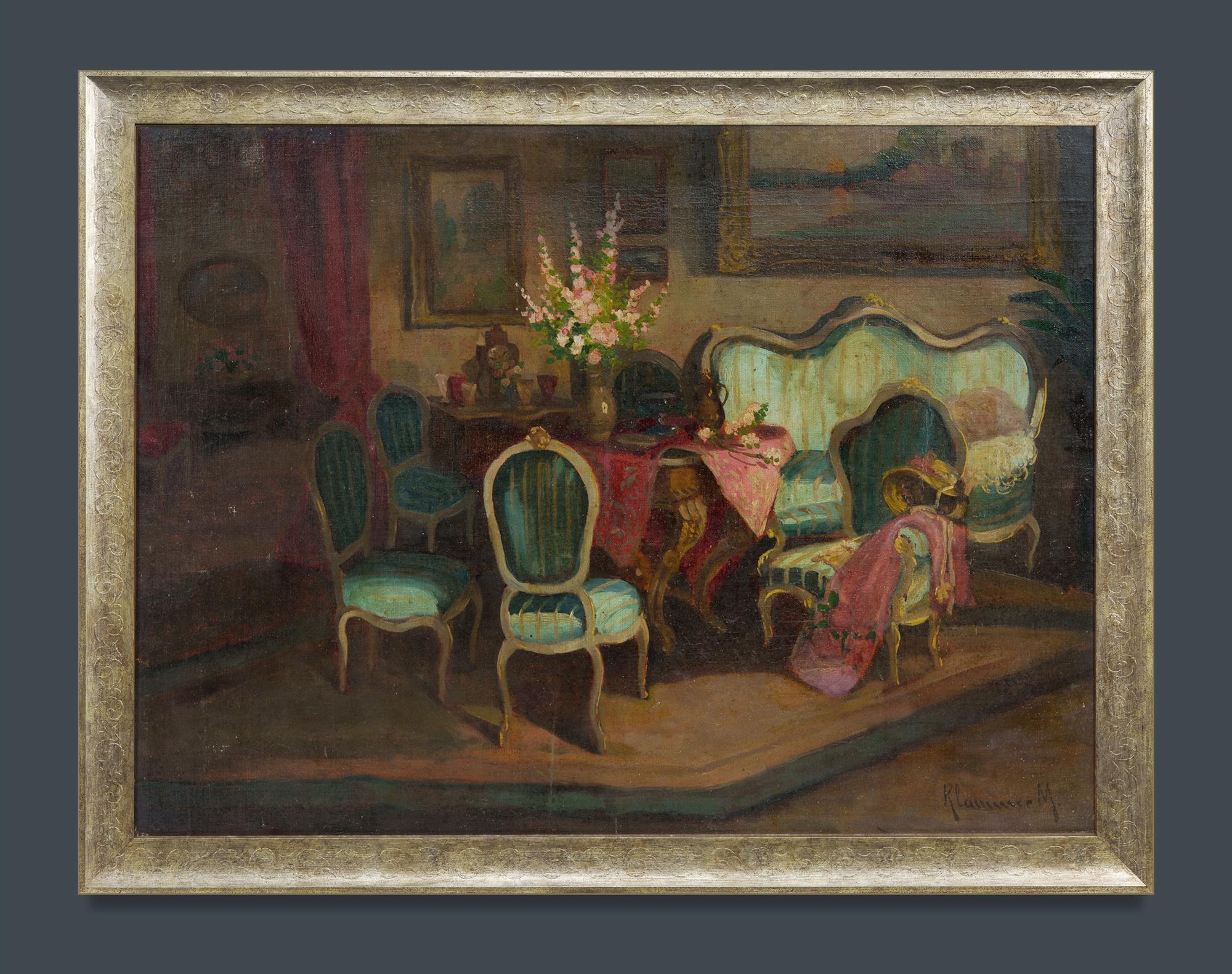 KLAMMER, Mariska (Hungarian 1877-?) Sunlit Interior Signed lower right Oil on Canvas on Board 57x77.5cm PROVENANCE: Private collection, Sydney.Estimate $300-500