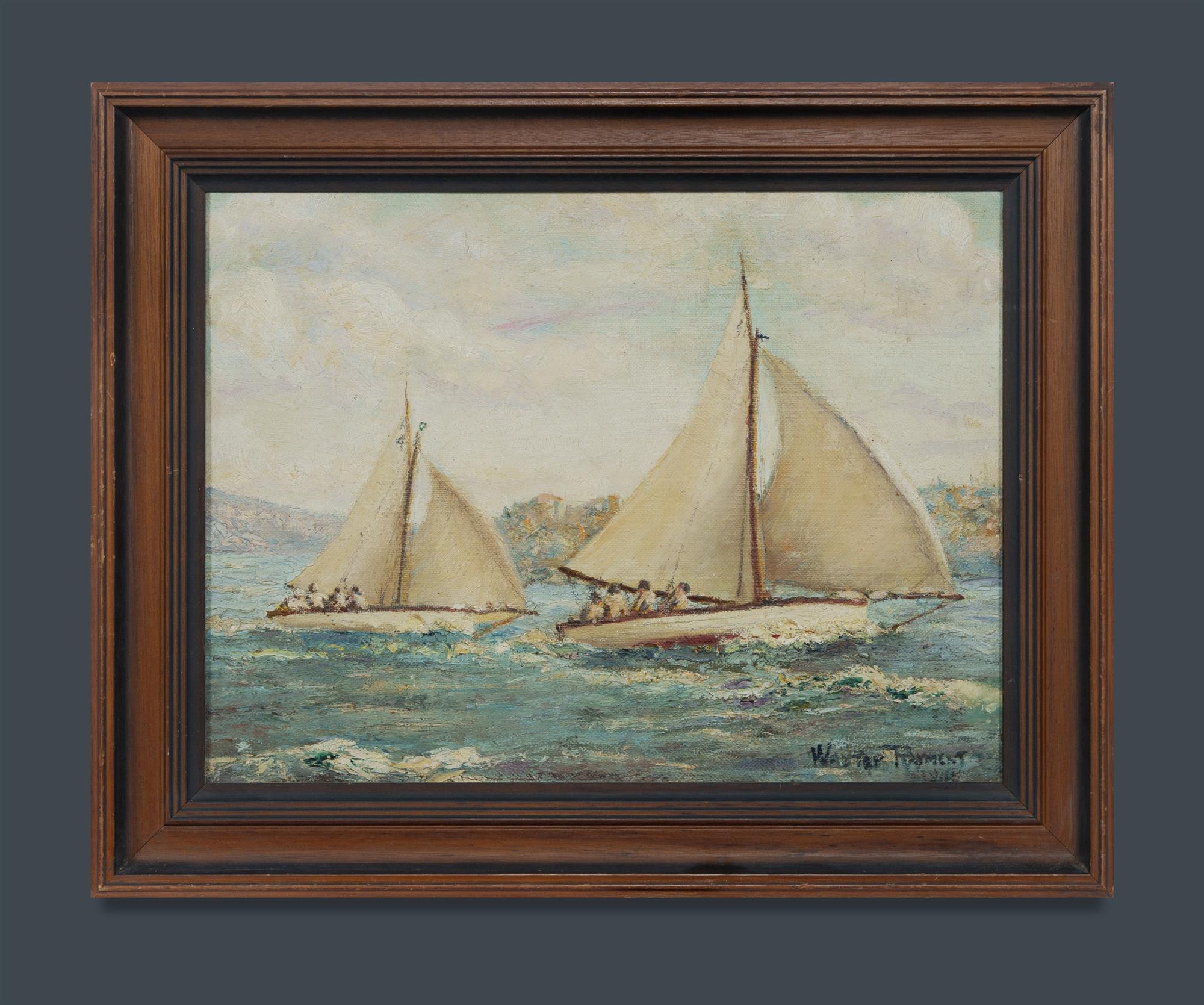 RAYMENT, Walter (working 1930s-40s) 'Sky and Shore from Robertsons Point [Sydney Harbour]' Signed lower right Oil on Canvas on Board 29x39cm PROVENANCE: The Fred and Elinor Wrobel Collection, Sydney.Estimate $100-200