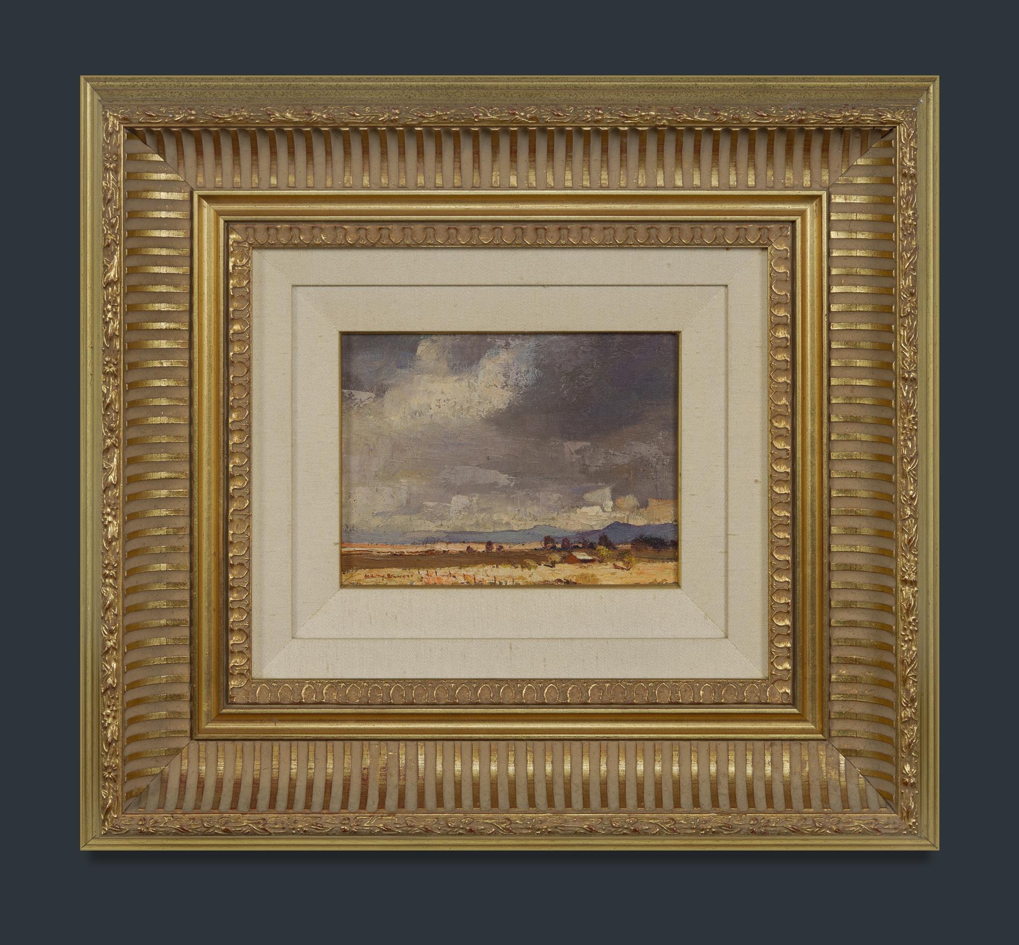 BENNETT, W Rubery (1893-1987) 'Cloudy Landscape' Signed lower left. Oil on Board 15x20cm PROVENANCE: The Schubert Galleries, Surfers Paradise, Qld (invoice supplied, dated 11th June 1988); The Estate of the Late Douglas Black, Queensland.Estimate $800-1,500