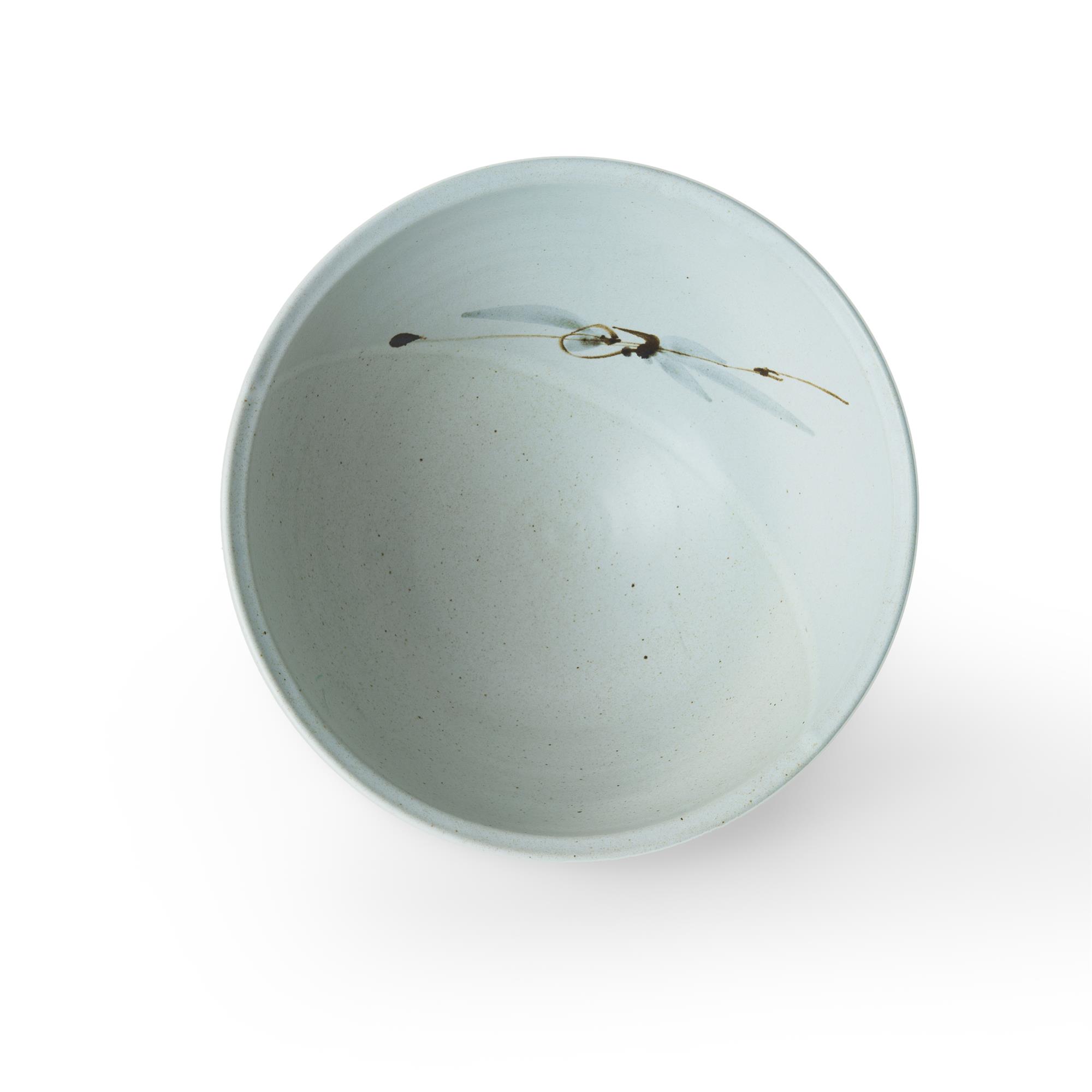Victor GREENAWAY (b.1947) Large Stoneware Bowl With ash and magnesium glaze with brushed iron and cobalt plant decoration and raised slip line. Impressed Broomhill Pottery seal. (Dia.28cm)Estimate $80-150
