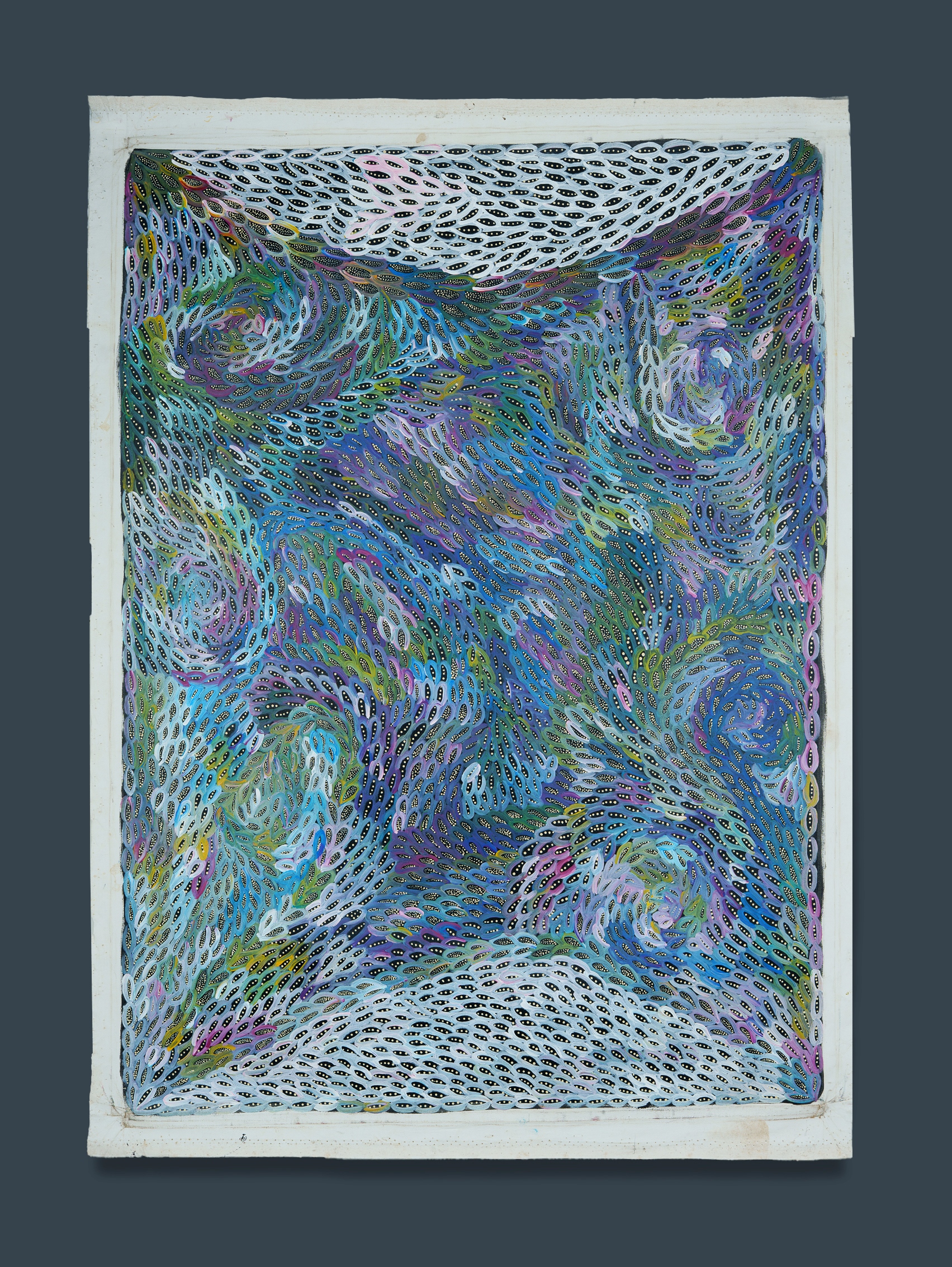 PETYARRE, Anna Price (Aboriginal born c.1965) 'Bush Yam Seed,' 2004. Signed and inscribed verso. Acrylic on Canvas 122x89cm (image) PROVENANCE: Russell Guy, Didgeridoo / Artifacts, NT (certificate of authenticity supplied)Estimate $700-1,100