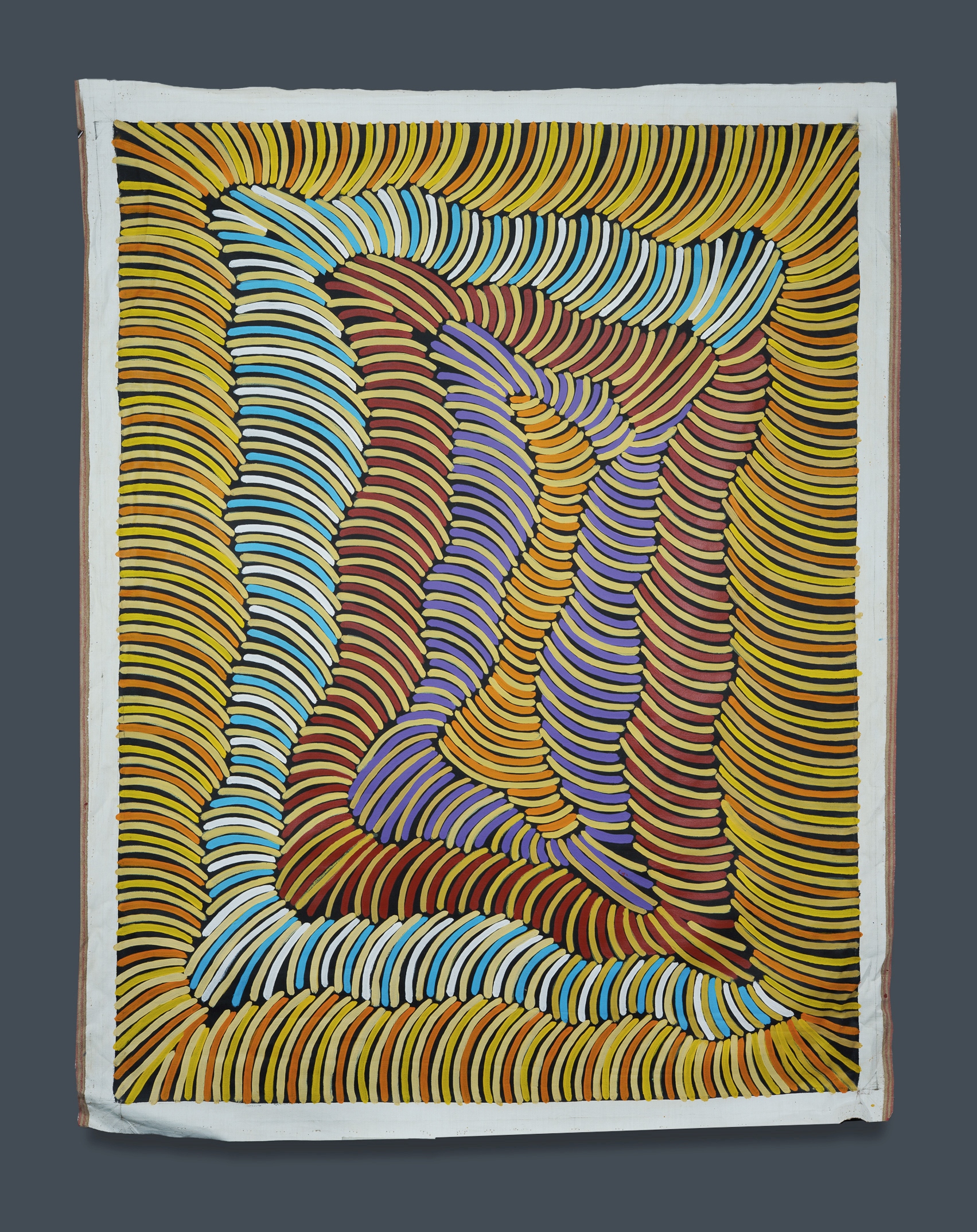 PETYARRE, Violet Pitjara (Aboriginal born c.1945) 'Mountain Devil Lizard,' 2003. Signed and inscribed verso: DBG/HBT PITV 01-0506. Acrylic on Linen 162x122cm (image) PROVENANCE: Russell Guy, Didgeridoo / Artifacts, NT (certificate of authenticity supplied)Estimate $400-700