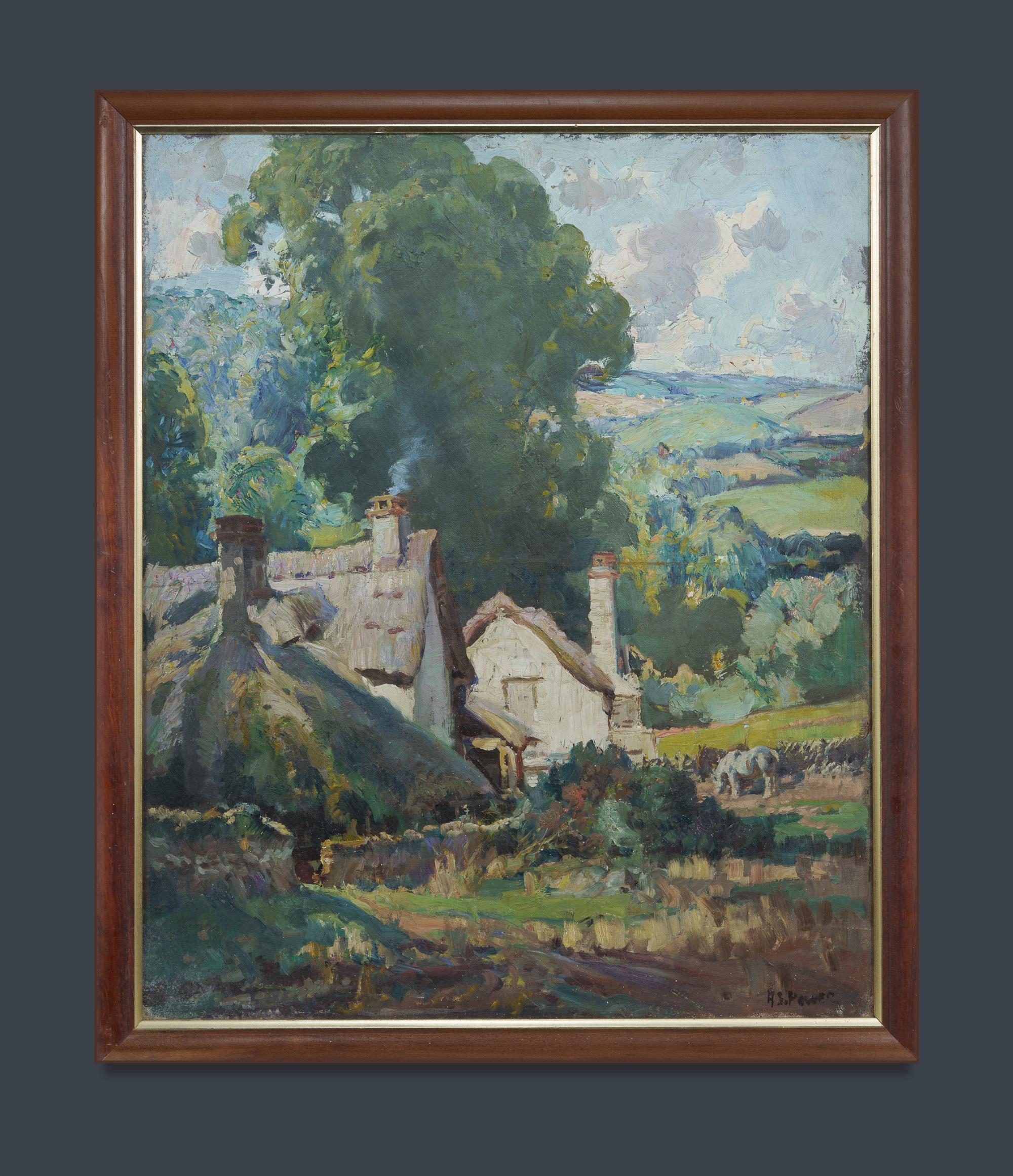 POWER, Harold Septimus (1878-1951) Thatched Cottages in Rural Setting Signed lower right. Oil on Canvas 75x61.5cm