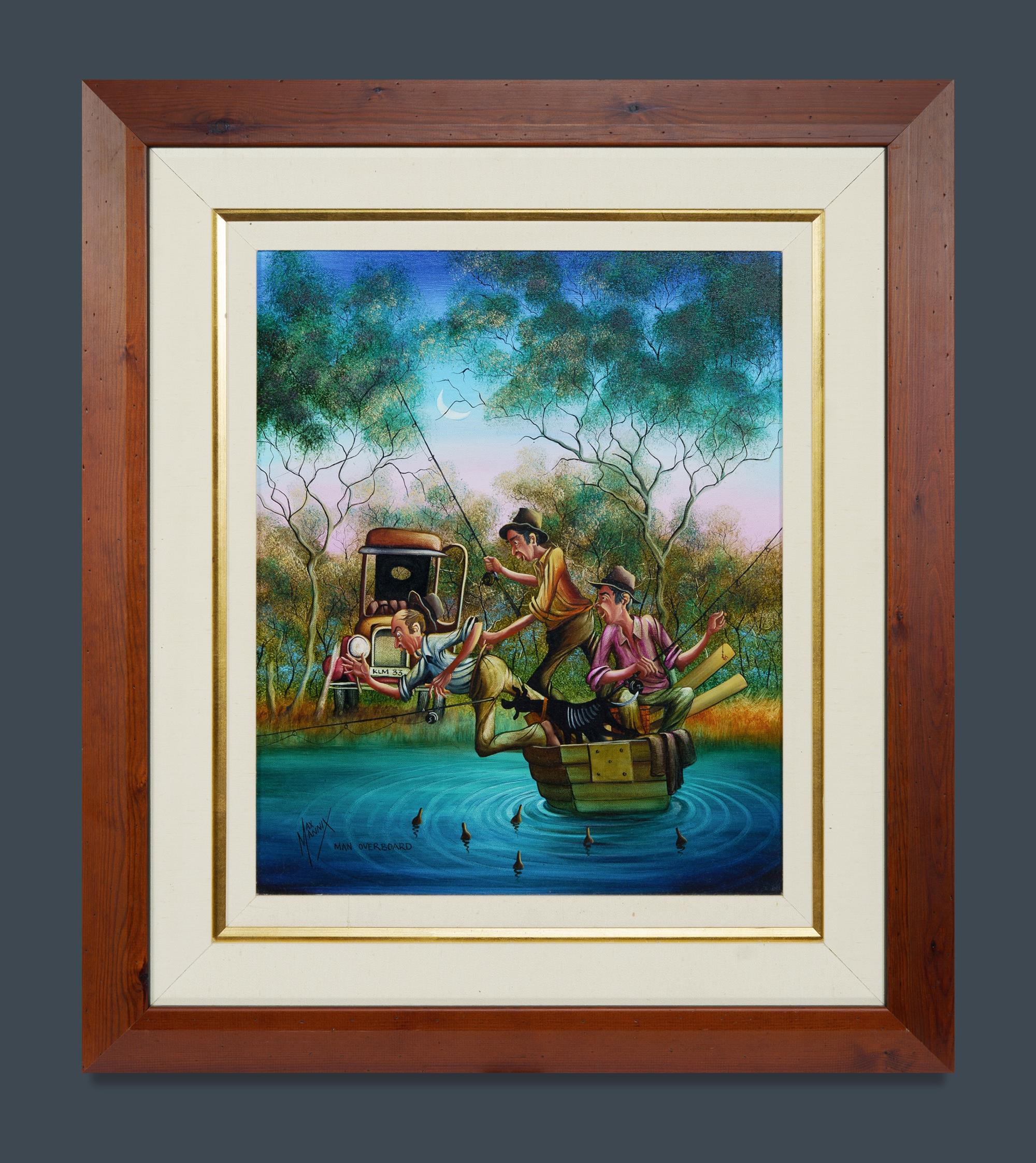 MANNIX, Max (b.1939) 'Man Overboard' Signed lower left. Additional signature, sketch and dedication verso. Oil on Canvas on Board 55x45cmEstimate $1,600-2,500