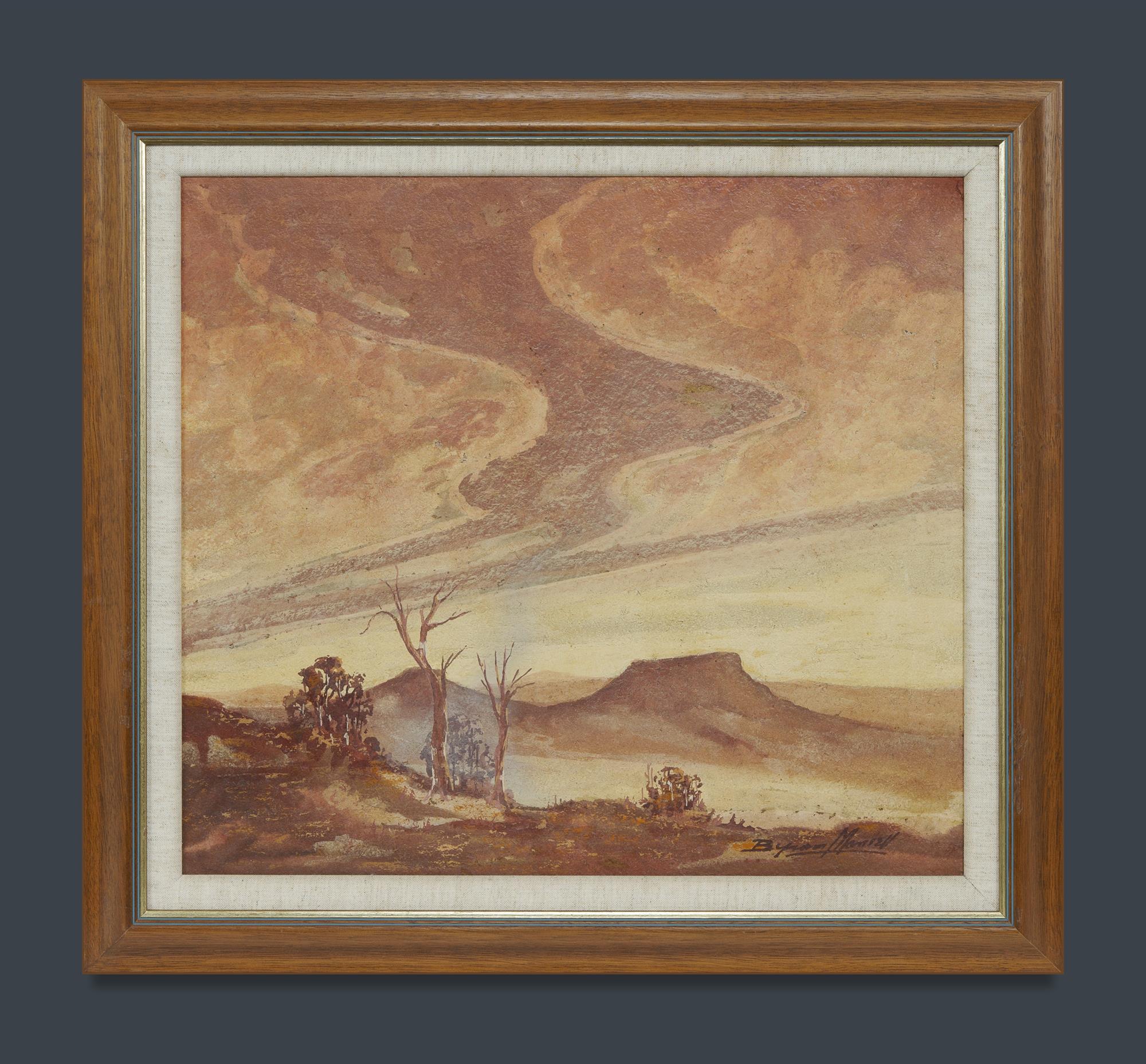 MANSELL, Byram (1899-1977) 'The Good Earth Rests - Central Australia' Signed lower right; artist's label verso. Earth Pigments on Board 44x49.5cmEstimate $50-100