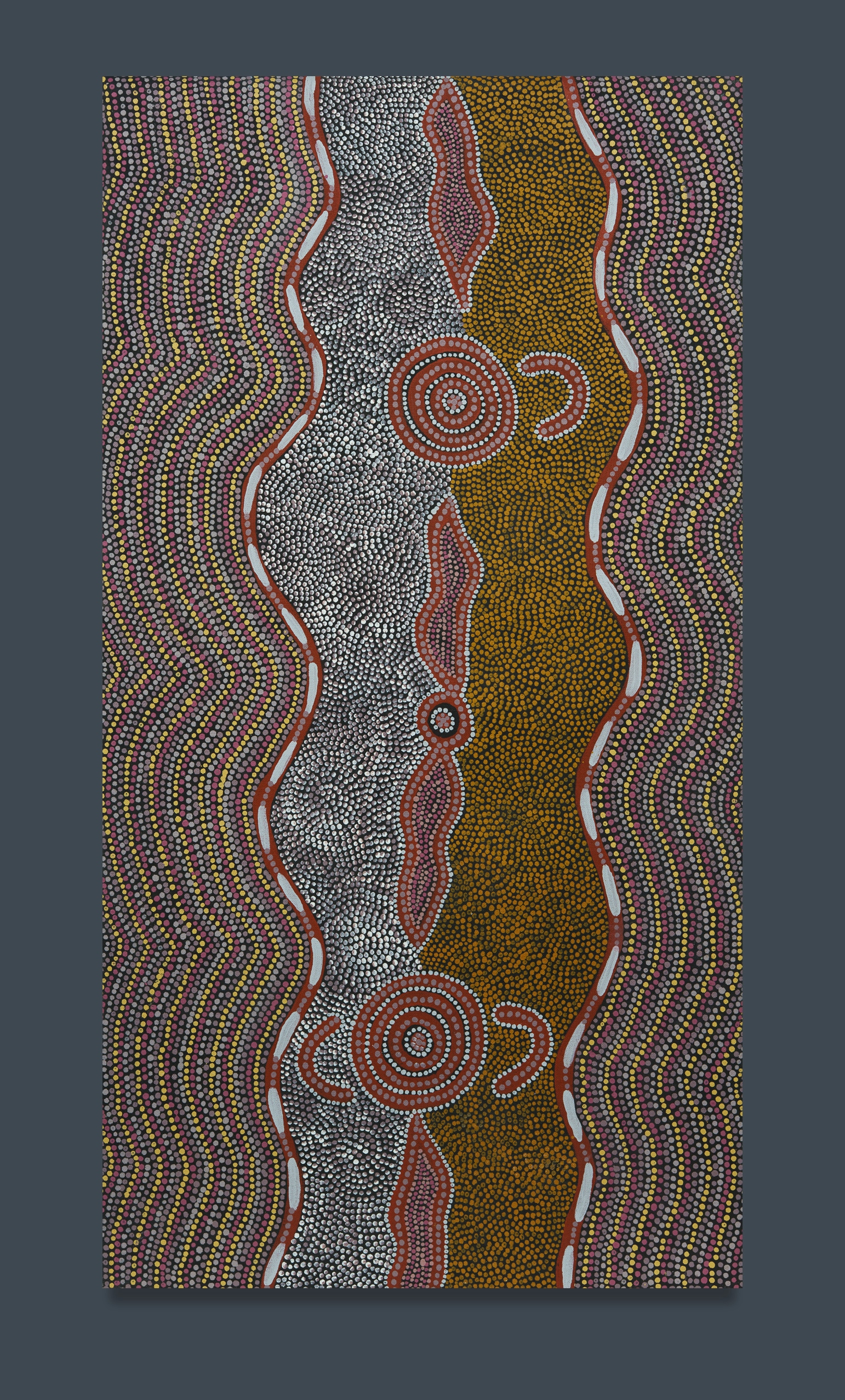 NAPANGARDI, Pansy (Aboriginal born c.1948) Women's Dreaming Signed verso 'Pansy' Acrylic on Linen 104x56cm PROVENANCE: Cromwell's Sydney, November 9th 2004 (lot 84); Ken Hinds Cultural Heritage Collection, Qld.Estimate $400-700