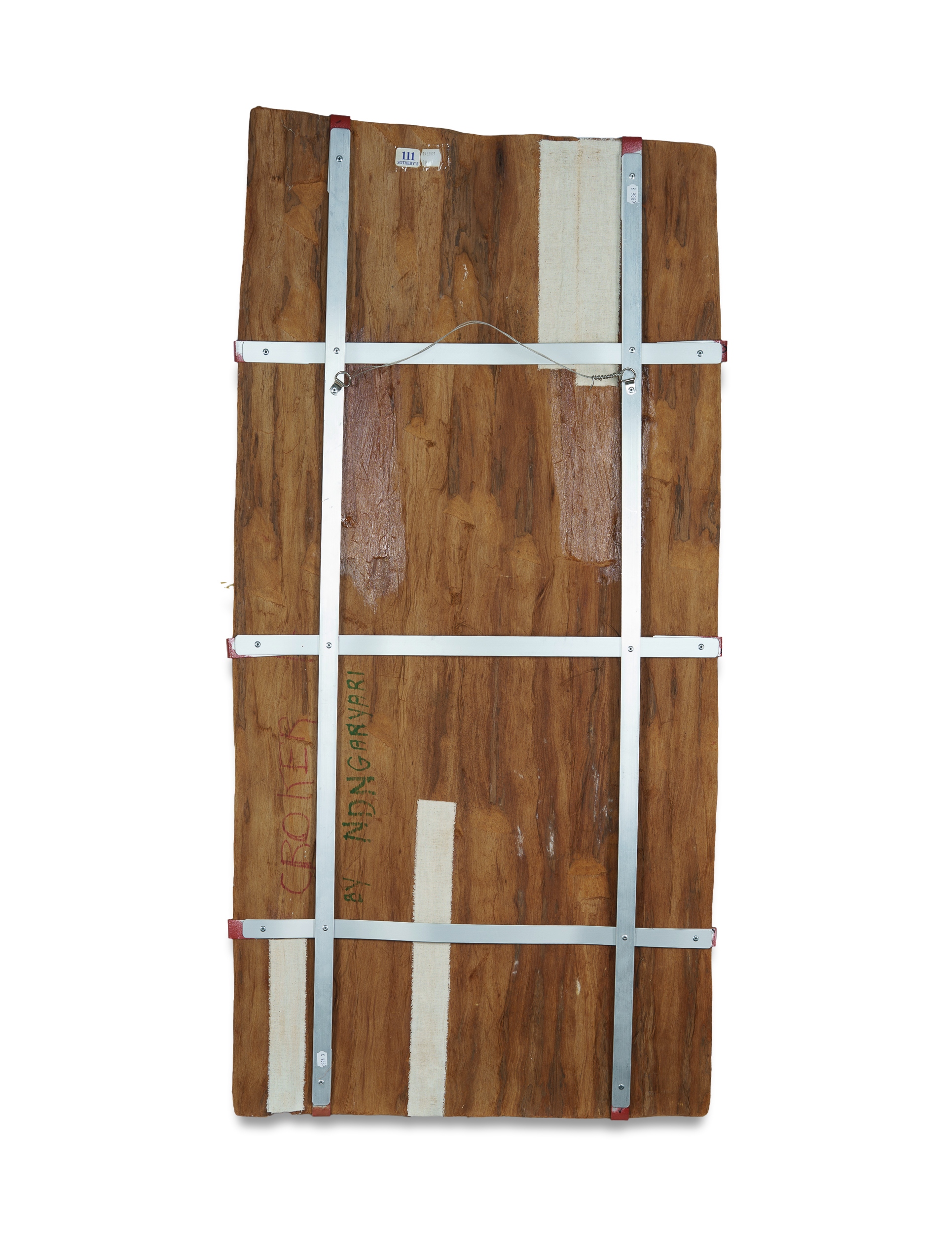 Attrib. NANGUNYARRI, January (Aboriginal 1901-1972) Two Crocodiles Inscribed verso. Natural Earth Pigments on Bark 100x53.5cm PROVENANCE: Jim A Davidson, Melbourne (1960s); The Joan and Robert Rowland Collection, Melbourne; private collection, Canberra.Estimate $500-800