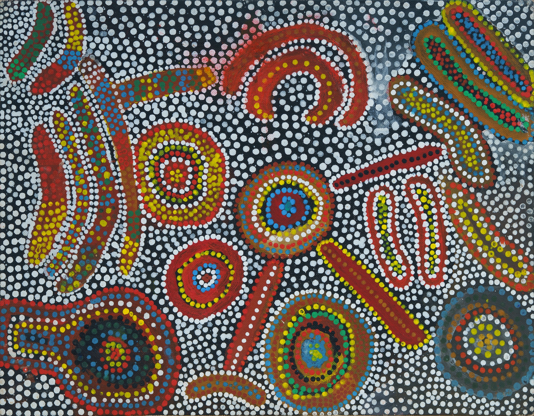 KNGWARREYE, Kudditji (Aboriginal c.1928-2017) (2) Untitled, 1980s. Both signed verso. Acrylic on Canvas Board (2) 45.5x35.5cm (each) PROVENANCE: The artist; acquired by the current owner (private collection, Sydney) whilst working regionally as a nurse c.1987-88.Estimate $200-400