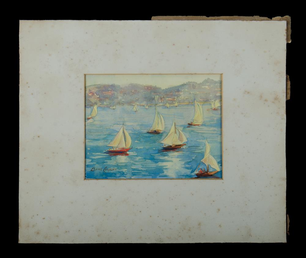 COGHLAN, Elaine (1897-1989) (3) Sydney Harbour Glimpsed Through the Trees (unsigned) (28.5x25.5cm); 'Middle Harbour' (16x30.5cm); & 'Boats from Cremorne Point' (12x15.5cm) W/Clr (3) Provenance: Angeloro family collection. Estimate $200-400