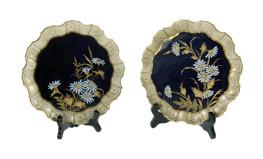 Aynsley Fruit Set, c1880. Gilded and enamelled with floral decoration. Comprising compote with six fruit plated. Estimate $120-250