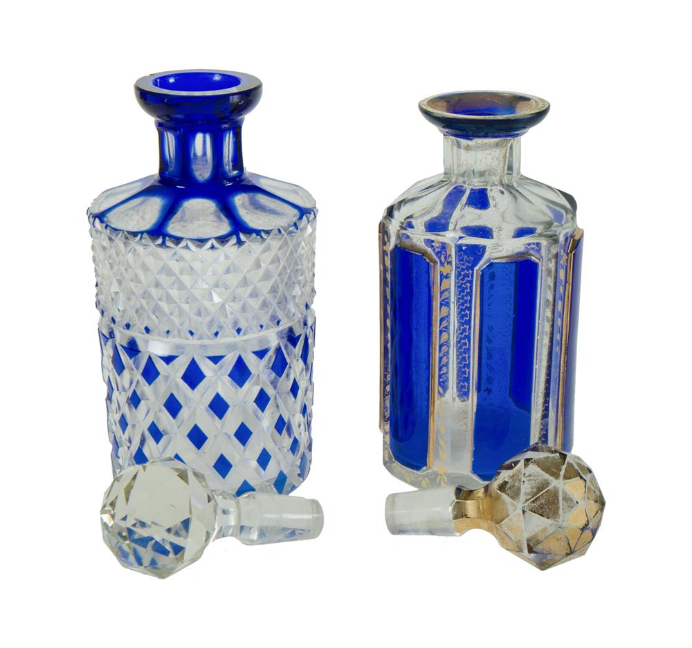 4 Various Blue Boxed Glass Boudoir Items. Incl. two scent bottles; powder bowl etc. Estimate $80-160