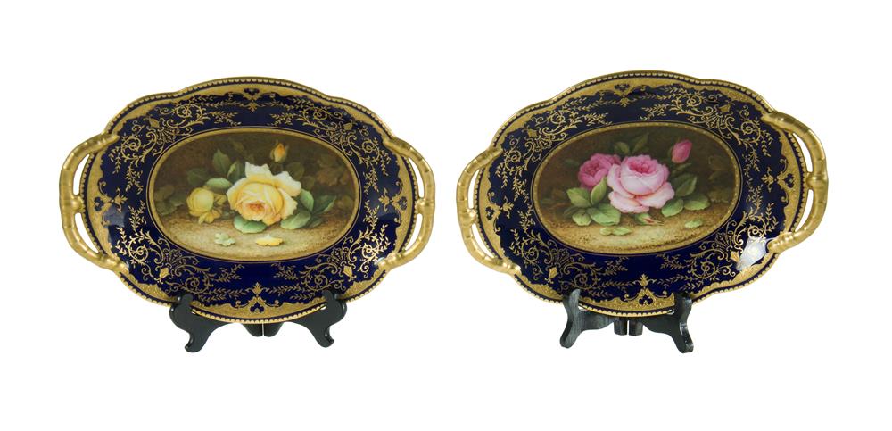 Set 15 Coalport Hand Painted Cabinet Plates. Each signed 'F Howard' & painted with roses. Floral gilt & cobalt borders. One restored, five with hairline cracks. Dia 23cm (each) Estimate $500-1,000