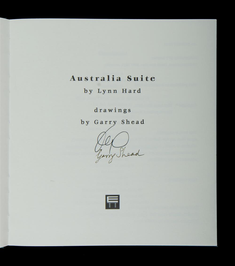 BOOK, 'Australia Suite.' By Lynn Hard, illustrated by Garry Shead. No. 7 of 100. Signed aquatint etching by Garry Shead. Estimate $200-300