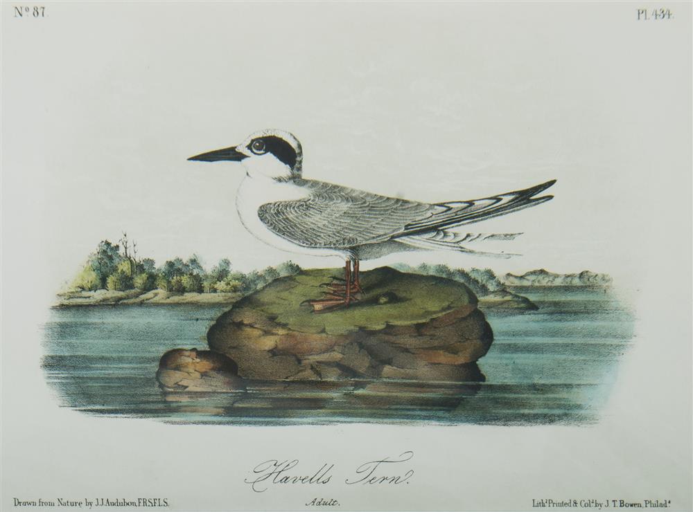 After AUDUBON, John (USA 1785-1851), 3 Various Engravings. 'Tropic Bird' (12x18cm) plate 427; 'Marvell's Tern' (17x11cm) plate 434; & 'Trudeau's Tern' (10x20cm) plate 435. Together with a coloured etching 'Rhea, American' (15x9cm). Steel Plate Engravings (3) Estimate $100-200