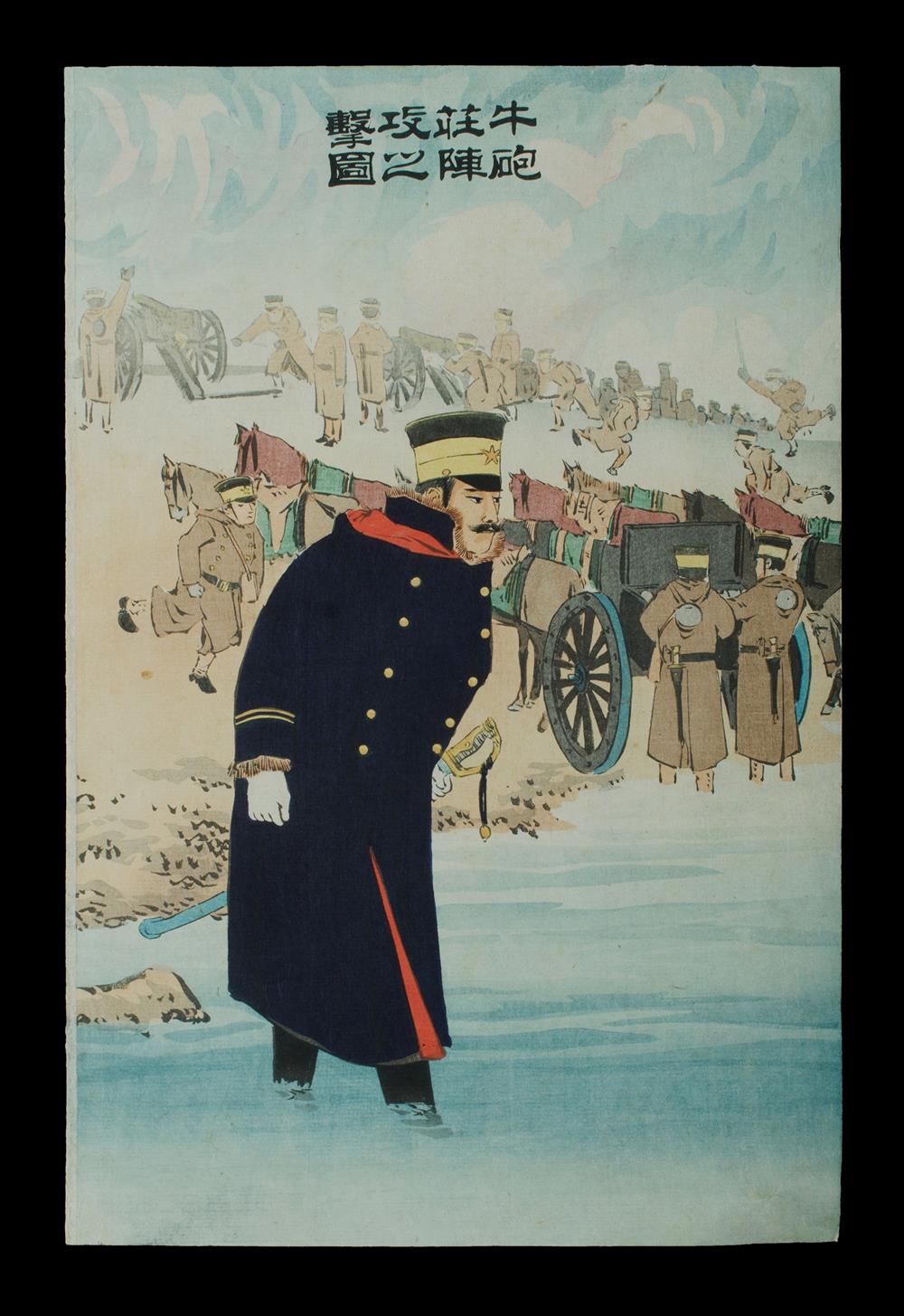 KIYOCHIKA, Kobayashi (Japanese 1847-1915) 'Attack at Niuzhuang' Original Meiji edition. Woodblock Triptych 36x71cm (overall) Estimate $100-200