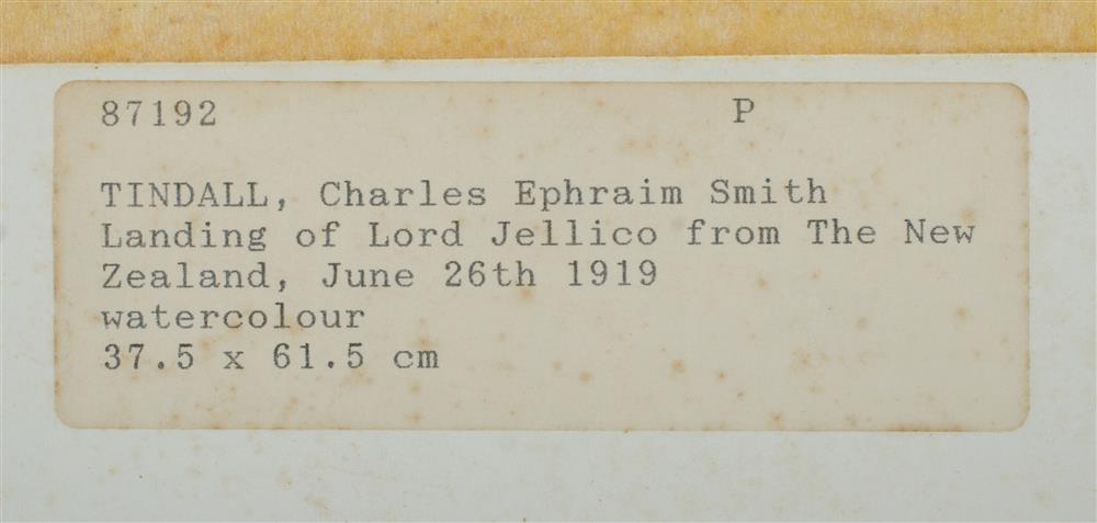 TINDALL, Charles E S (1863-1951) 'Landing of Lord Jellicoe, from The New Zealand, June 26th 1919' W/Clr & Gouache 37x61.5cm Estimate $500-800