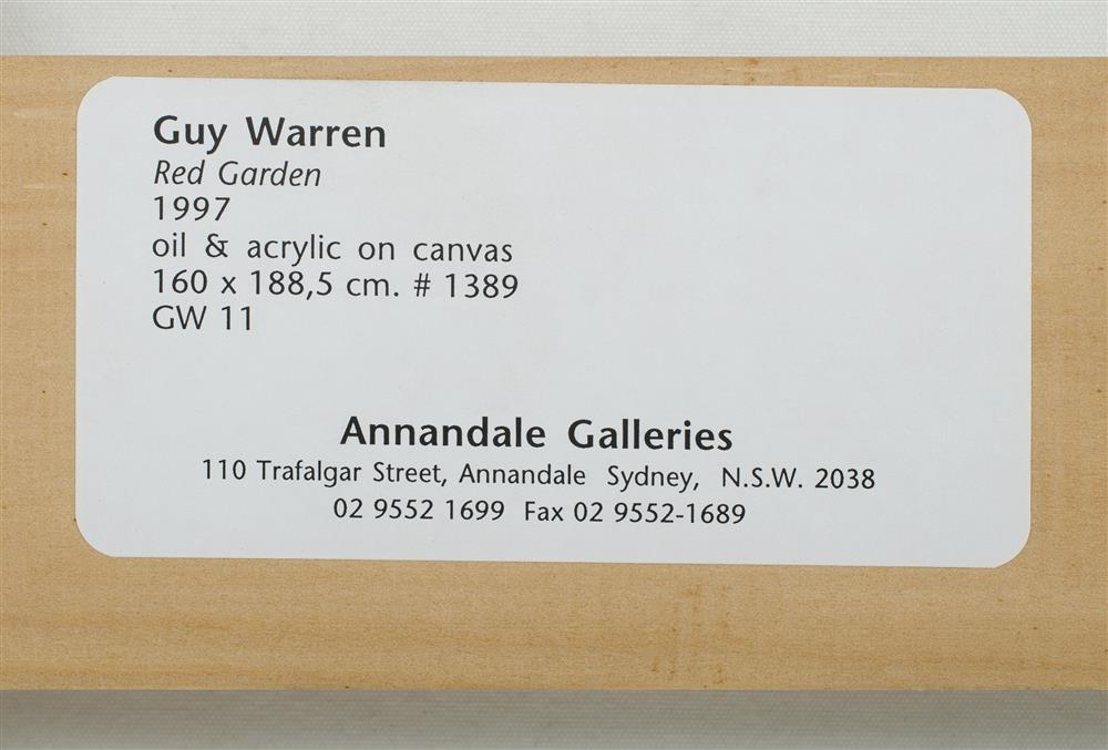 WARREN, Guy Wilkie (b.1921) 'Red Garden,' 1997. Annandale Galleries, Sydney, label verso. Oil & Acrylic on Canvas 160x190cm Estimate $1,500-3,000