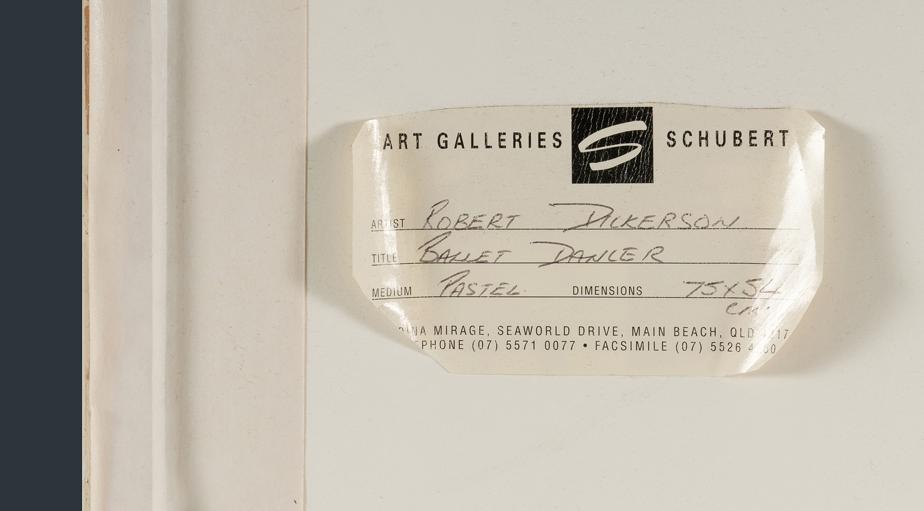 DICKERSON, Robert (1924-2015) 'Ballet Dancer' Ex Art Galleries Schubert - label verso. Pastel 77x57cmEstimate $6,000-8,000