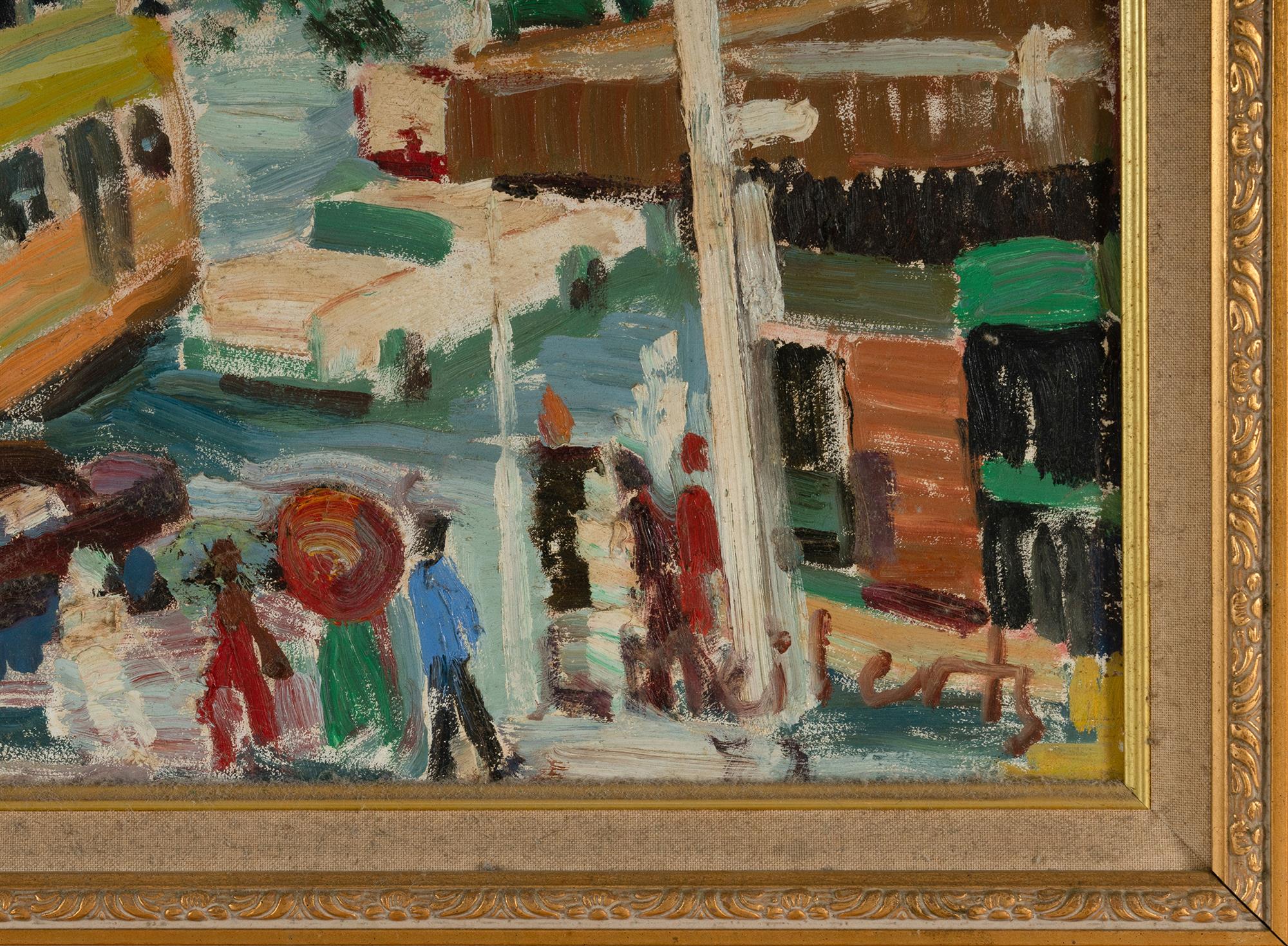 MEILERTS-KRASTINS, Ludmilla (Latvian/Australian b.1908-1998) 'Bourke Street (Melbourne)' Remnants of label verso. Oil on Board 59.5x75cmEstimate $1,000-3,000