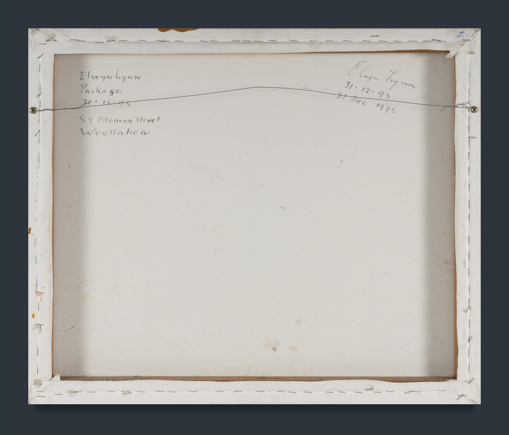 LYNN, Elwyn Augustus (1917-1997) 'Package,' 1995. Signed, titled and dated verso. Mixed Media on Canvas 60x72cmEstimate $800-1,500