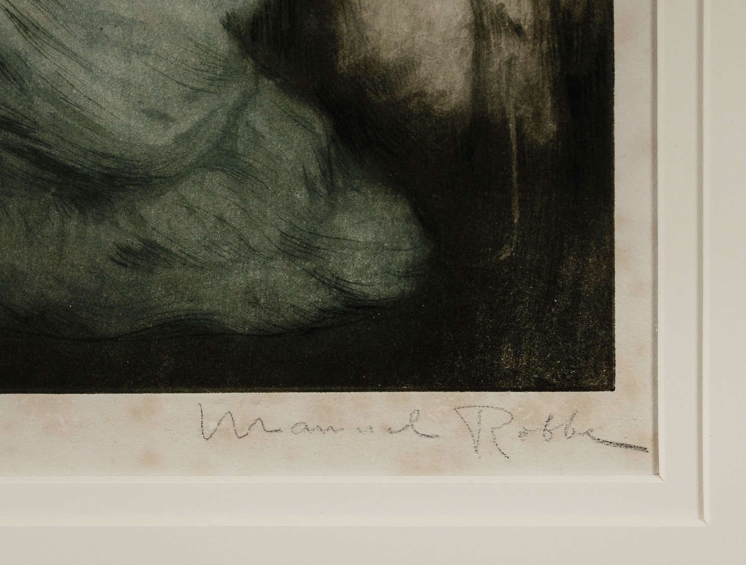 ROBBE, Manuel (French 1872-1936) 'Les Baigneuses (The Swimmers),' 1911. Annandale Galleries, Sydney, label verso. Colour Aquatint & Drypoint 39.5x57cm (plate)Estimate $200-400