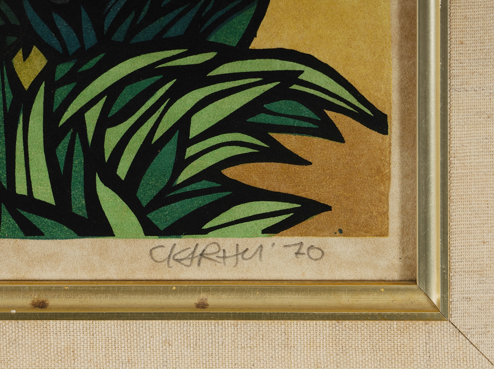 KARHU, Clifton (USA 1927-2007) 'Tahiti Nets I,' 1970. Woodcut in Colours 5/50 25.5x40cmEstimate $100-300