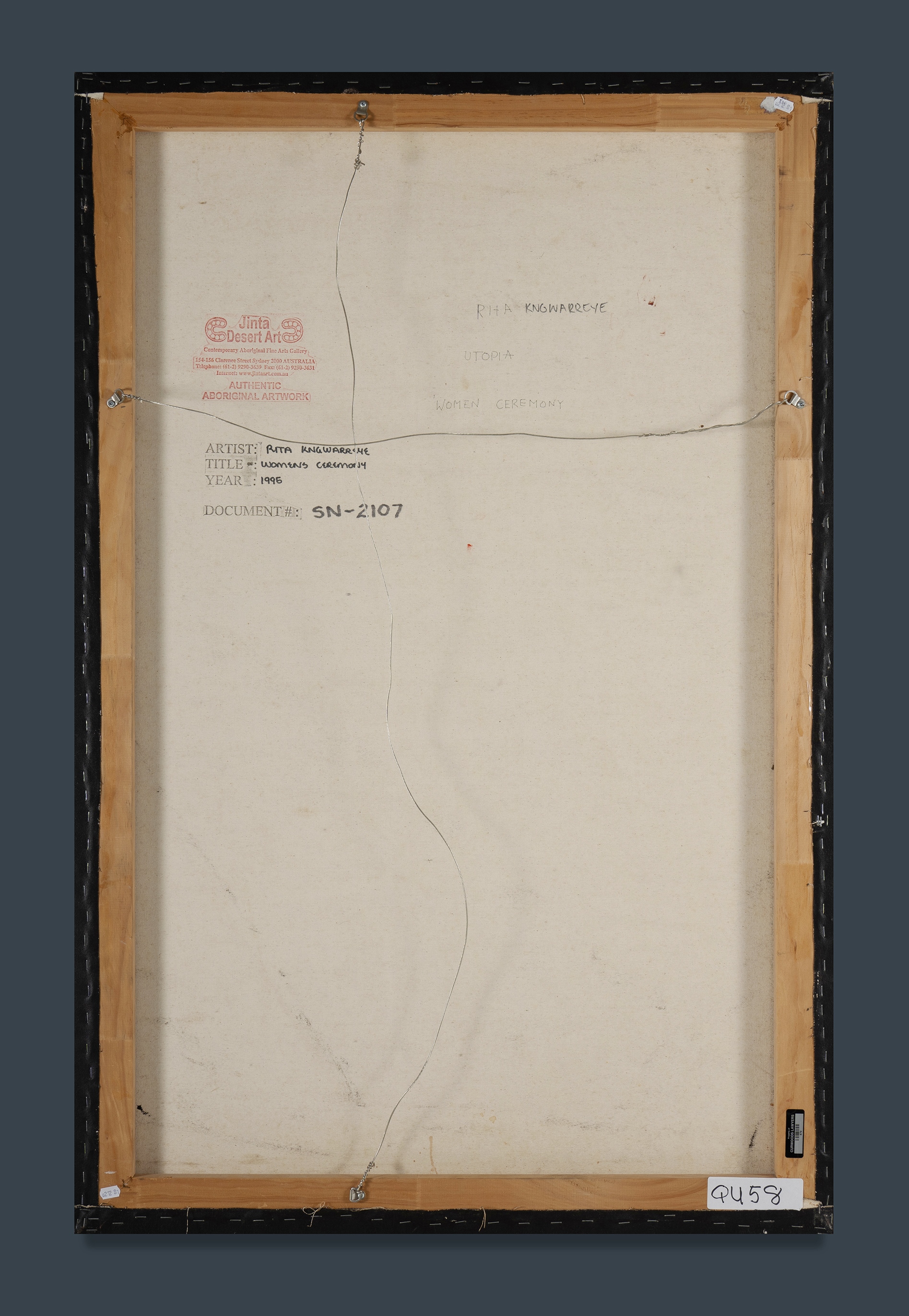 KNGWARREYE, Rita 'Women's Ceremony,' 1995. Ex Jinta Desert Art (stamp verso); cat #SN-2107. Acrylic on Canvas 123x80cmEstimate $180-350