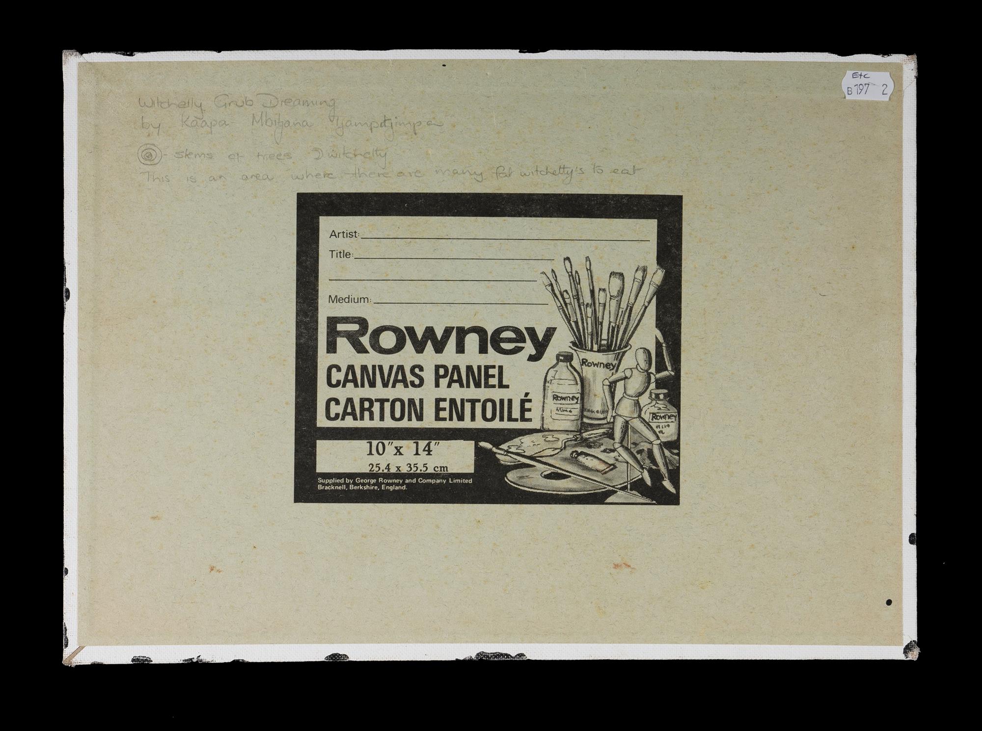 Attrib. TJAMPITJINPA, Kaapa Mbitjana (Aboriginal 1926-1989) 'Witchetty Grub Dreaming' Title & artist attribution verso. Acrylic on Canvas Board 35x25cmEstimate $300-600