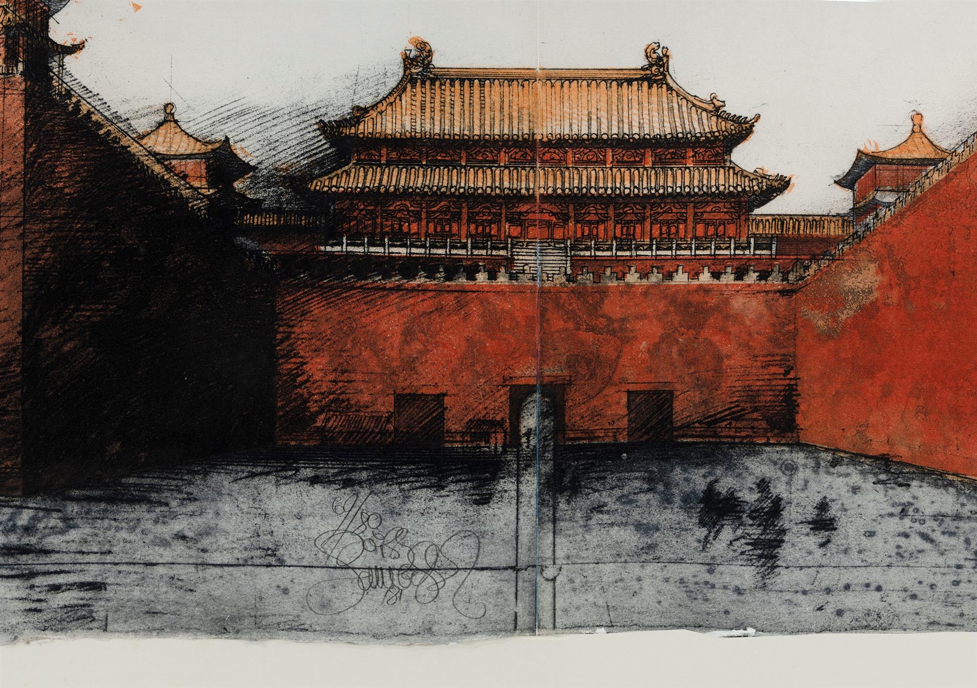 SCHMEISSER, Jorg (1942-2012) The Forbidden City, 1981. Provenance: Estate late Sally Burrows, art gallery director, Sydney 1970s-1990s. Coloured Etching 69/80 81.5x79cmEstimate $200-400